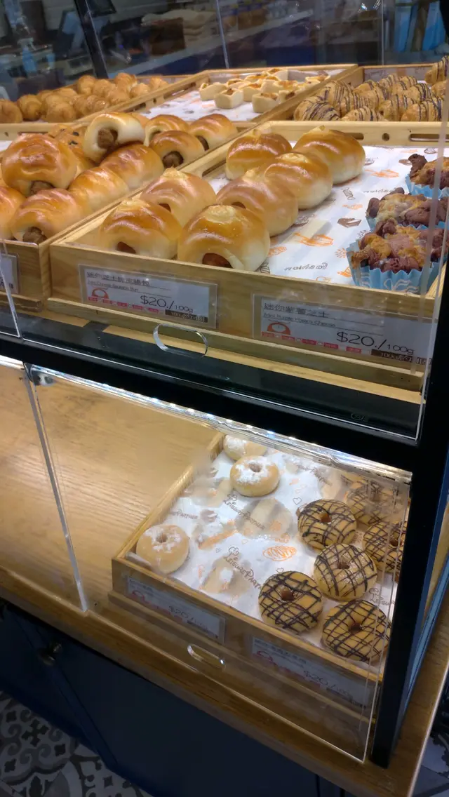 麵包舖位置較偏,一入門口見中間的櫃放滿迷你包,好多款式,價錢係以g計,感覺好均真,包控表示可以一次過試好多款好開心😋迷你紫薯芝士: 個樣幾特別, 但其實只係一個麵包加幾粒細細粒嘅紫薯同少量芝士係面。芝士同紫薯粒都冇乜味,而且兩樣都有d硬,似係食咗一個普通偏甜嘅包迷你朱古力冬甩: 初初夾嗰陣見到墊底張紙好油,以為會似放題食到嗰d一pat油淋淋嘅麵粉漿咁,但佢唔係!唔單止一d都唔硬唔乾,食落仲唔油膩,偏軟熟,淋喺面嘅朱古力醬就唔太突出,純粹只係用嚟裝飾,整體甜味比較低,有驚喜!迷你朱古力牛角酥: 中間有少少朱古力醬提升咗甜度,但就同我預期嘅一樣唔酥脆,亦都較油,欠牛油香芝士qq波: 細細粒,一啖食得曬,外皮唔乾身亦都唔油,內裏煙煙韌韌,有咬口👍🏻芝士味唔會好淡亦都唔會好濃,咬耐d芝士味就越黎越香,食完之後芝士嘅鹹味先會出,第一次食到咁嘅芝士麻糬波🤤我total買咗5粒芝士波,以上甜包每樣1個,夾埋只係$23,幾抵食!下次會試埋其他款😋…Read More