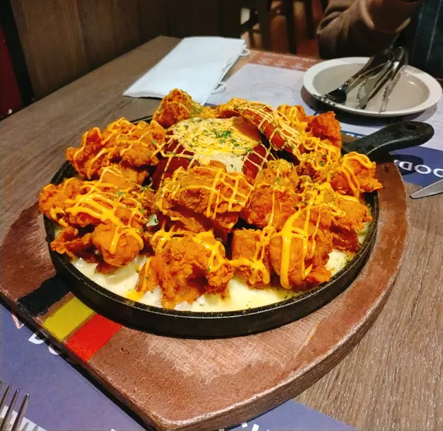 見到某app book有得半價,所以決定一於黎食炸雞🍗menu有好多唔同口味嘅炸雞/烤雞,仲有其他野食,比我想像中多菜式。對芝士0扺抗力嘅我就叫咗三重芝士脆雞🧀一上枱就好香芝士味,雞嘅份量亦都多,係炸雞底下嘅Mozarella cheese仲可以拉絲添😋點埋麵包入面嘅cream cheese醬真係三重芝士享受!可惜炸雞並唔係帶骨嘅雞件,雖然比較容易食,但感覺唔夠香。麵包係冇烘過嘅普通提子麥包,size偏細,麵包同cream cheese醬兩個都偏甜,一齊食會少膩。食耐咗d mozarella cheese會變硬,要好大力先'liu'得起,所以大家最好襯熱食啦!…Read More