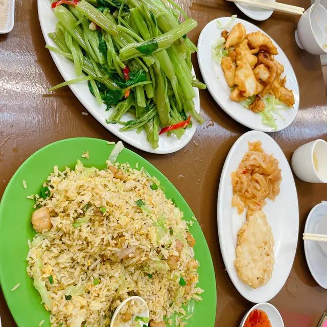 係大澳行下見好攰,本身想食既又要等就真係好random 入左間酒樓入到去 地方好大 座位都算寬敞 望一望餐牌,都係普通酒樓會食到嘅小菜,喺店員好落力嘅推介之下我哋試咗:椒鹽鮮魷🦑炸得都幾香口而且炸粉唔算厚,但係一啲調味都冇,味道都幾單調,冇諗過會係咁嘅整法😅墨魚餅同椒鹽鮮魷🦑嘅整法一模一樣,只可以靠附送嘅泰式辣醬先有味,唔知係咪因為大澳係食海鮮為主所以用原味就足夠。鹹魚雞粒炒飯鹹魚雞粒炒飯都做到粒粒分明,不過整體偏鹹,朋友都覺得好普通。腐乳通菜最後腐乳通菜都係正常味道,但朋友覺得可能炒耐左/本身d 菜比較老,都係評價一般。最後買單都食咗接近$500. 相信都係做遊客生意所以價錢都幾貴。…Read More