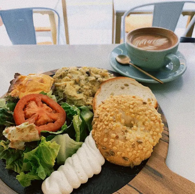 🍽All Day Breakfast 見到係bagel🥯就即刻想試‼️有沙律菜,芝士大啡菇,黑松露炒蛋,粟米貝果加cream cheese。可惜bagel有點失望,口感似麵包唔煙韌。其他食物都係即叫即整,味道正正常常。☕️Flat White飲品無跟餐,但可以減$5 每杯咖啡仲配上一塊獨立包裝既自家製蝴蝶酥,好有心😆拉花靚 而且溫度好夠熱 好飲👍🏻室內位置唔多,似一間小cafe🌷所以坐outdoor chill d🤗 都有打卡影相位架!! …Read More