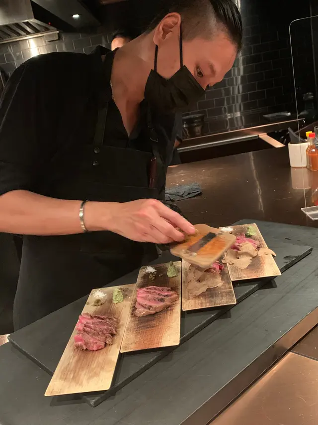 东西不难吃但是14度的天气开窗烧烤,烤肉的火根本不足,烤eel 烤了20几分钟还是生的。 鸡一口也没吃因为根本没法烤熟。 吃到最后乌冬面上已飘一层油(因为太冷)。 作为一家烧烤店没有抽油烟机考开窗。 不知道那么多好的评价是因为喜欢吃生的么?1000块吃了个肚子不舒服。 马上到对面甜品喝点热的免得拉肚子了。 以后都不会再去了。