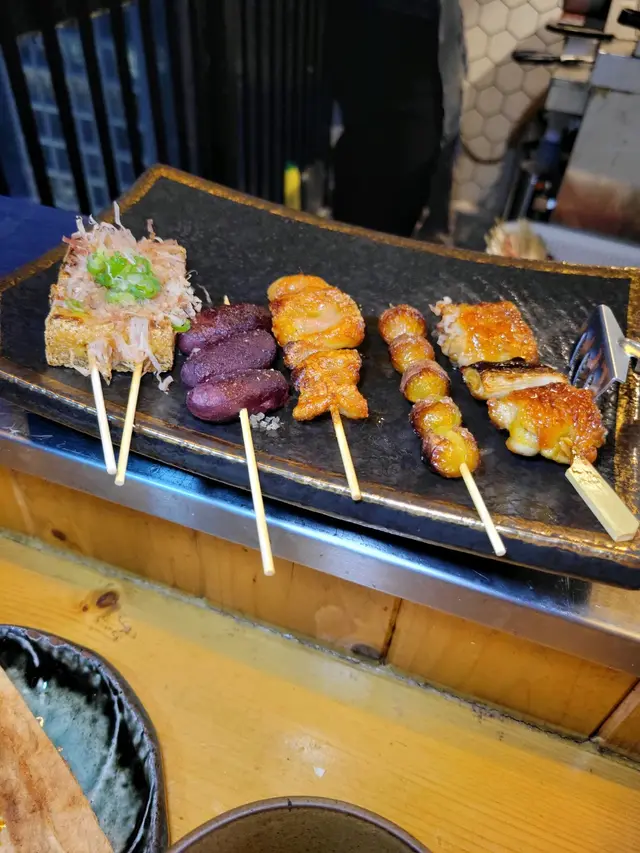 和朋友好鍾意食串燒,今日呢間餐廳主要以雞為主,但都有很多選擇的。首先揀咗煙燻鹿兒島燒腩,好濃煙燻香味,腩肉肥瘦均勻,好滋味!京蔥雞、雞腎、雞橫隔肌、雞胸紫蘇葉、 雞皮和雞蠔肉,每個部位都有不同口感,但味道鮮美!雞胸軟骨好特別,和一般軟骨唔同,脆硬少少,但送酒一流!雞中翼用鹽燒方式,還帶有微微蒜香味!換換口味,點了一些蔬菜:茄子、冬菇、日本銀杏、青椒仔、蘆筍、雞髀菇、翠玉瓜和珍珠番薯仔,可以清一清味蕾!還有牛舌、鱈魚乾、厚揚上面加有木魚絲,可令豆腐味道提升!雞油渣炒枝豆、雞油炒雜菜、雞油炒拉麵 ,用雞油炒的各種食物,香味濃郁,份外惹味!果味氣酒(巨峰味 ),烏龍茶割燒酎,係食串燒最佳拍檔!甜品係日本燒湯圓(花生、芝麻),熱熱地覺得好特別!…Read More