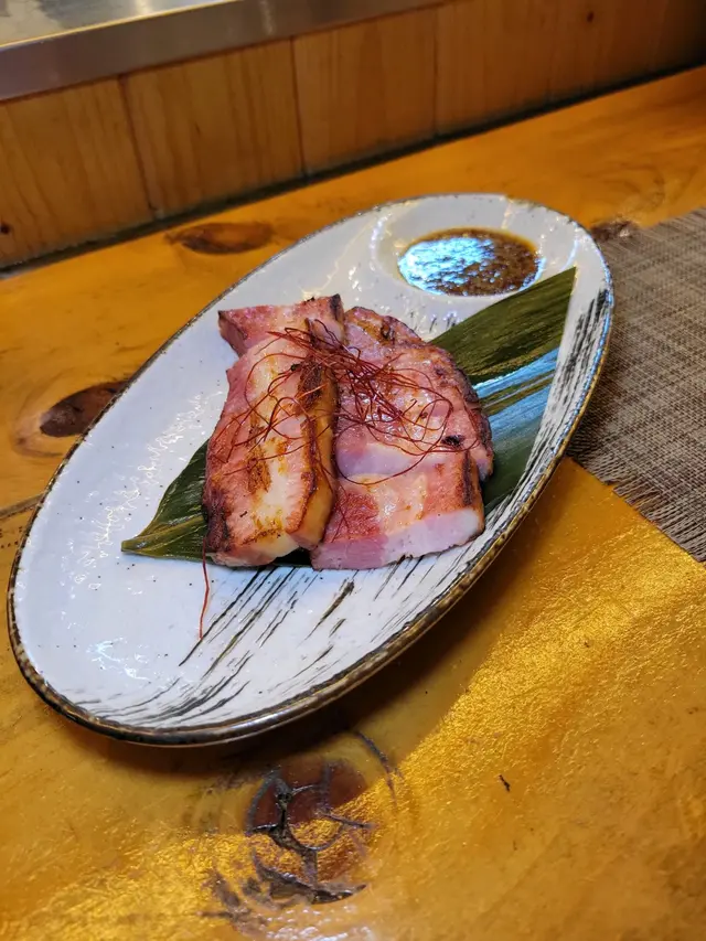 每次想食豚肉串燒,一定想起這間店舖,因他除主打豚肉串燒,還有很多選擇,我和朋友都非常喜歡!前菜係酸甜蕃茄,好醒胃!刺身盛有三文魚、油甘魚、帶子和赤蝦,海膽加在紫菜上面吃,鮮甜味美!原條魷魚筒:經燒烤後醮上醬汁, 更可帶出魷魚鮮味,肉質又彈牙!煙燻豬腩:豬腩肥瘦均勻,煙燻後外表微脆, 肉嫩而且有肉汁!牛油果伴芝士:牛油果上面伴有木魚絲和芝士,加上牛油果的軟滑,層次感豐富!上等豬脷串、 豬小腸串、 豚肉豬腦串,都係屬於豬內臟,如果接受到,係會感覺幾特別,且有嚼口!林檎紅薑豬肉卷:豬肉卷裏面放有蘋果紅薑,好清新香甜,唔覺豬肉肥膩!花生苗卷:豬肉包著花生苗做串燒,花生苗爽口,還帶有一股獨特的香味!味噌煮:裡面放有日本蘿蔔、油揚,吸收了味噌的味道,好滋味!燒菠蘿呢個甜品,係我和朋友的至愛,所以覺得份外香甜!乳酸味氣酒和巨峰梳打,係我地食串燒必有的飲品,酸酸甜甜,減低串燒的油膩感覺!…Read More