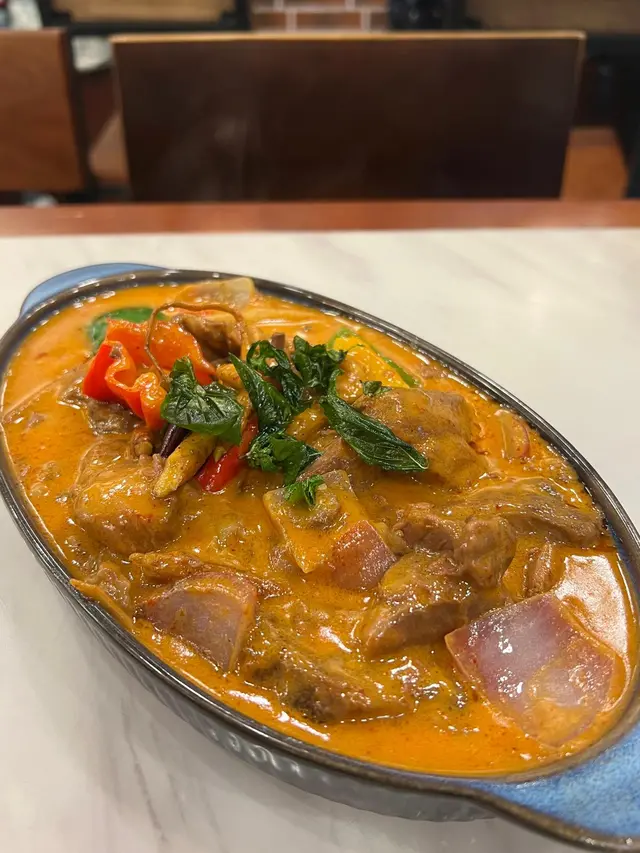 泰式紅咖哩燒牛肉 $98選用牛肋條,慢煮到軟淋入味,輕輕一咬就咬開,而且完美保持牛嘅肉香,再用泰式紅咖哩醬燒到表面微焦🍲,香氣撲鼻。味道層次爆燈,紅咖哩帶椰香🥥,辣度溫和,牛肉吸滿咖哩汁,咬落juicy唔鞋口。蒜蓉法包 $48法包外層烘到金黃脆口,咬落「咔嚓」聲💥,內裡保持軟熟。蒜蓉牛油沾滿成個包,蒜香濃郁但唔會嗆喉。用佢嚟沾紅咖喱,索晒咖喱汁就啱哂🥖。鮮蝦炒金邊粉 $88金邊粉炒到乾身唔油膩,仲帶鑊氣香。鮮蝦大隻爽彈🦐,芽菜韭菜保持爽脆,花生碎同青檸另上,自己調節。甜酸度啱啱好,唔會過甜或過酸,適合大眾口味,建議擠晒青檸汁同撈勻花生碎先食🍋‍🟩,風味更突出。泰式燒豬頸肉 $88每片都勁厚切🤩,仲要燒到邊緣微焦脆口,咬落去外脆內嫩,油脂甘香得嚟完全唔膩。啖啖肉嘅感覺好滿足,肉汁完全鎖住喺豬頸肉入面💧,可以問店員攞啲雞汁,沾埋一齊食,酸甜辣嘅調配令豬頸肉嘅風味提升。芒果沙冰 $38芒果肉含量超高🥭,甜度天然唔假喉。冰沙打得細滑冇冰粒,入口即化唔嗆喉。面層鋪咗新鮮芒果肉,大大杯夠晒解渴。飲完成杯都唔會口渴,證明冇落人造糖精😋。…Read More