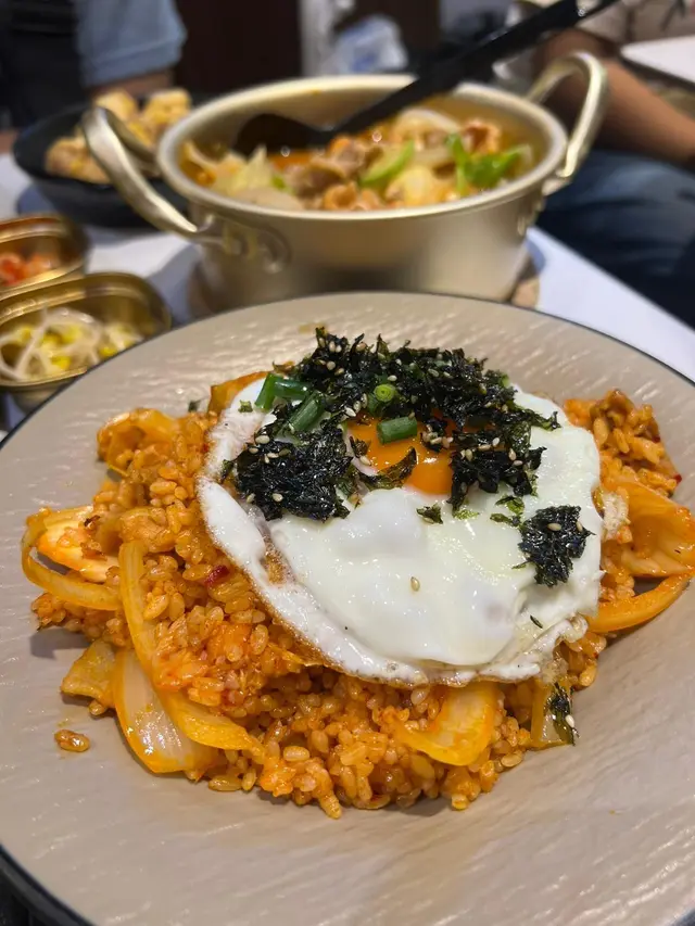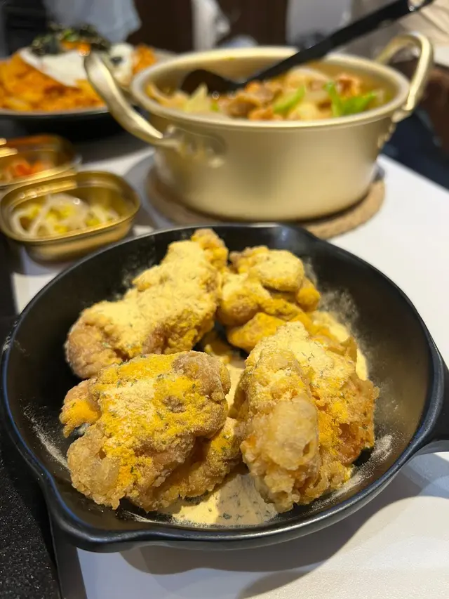 有一間超平價韓式餐廳,份量充足,價錢公道,店內個牆身仲有熱播嘅魷魚遊戲油畫添🎨。一人餐都勁抵食,包咗一人炸雞,主食同一杯野飲。炸雞(芝士撒粉)炸雞外皮脆身,芝士撒粉鹹香濃郁,帶微微奶香🧀。雞肉醃得入味,炸到外脆內嫩,肉汁鎖得住,每啖都食到濃濃芝士味,唔會過鹹。泡菜五花腩炒飯拼太陽蛋泡菜酸辣醒胃,太陽蛋煎到邊脆蛋黃流心,撈勻飯粒更香滑。泡菜辣度適合香港人,五花腩唔算太肥,食哂成碗都唔膩🥘。芒果乳酸梳打加$16轉嘅飲品。芒果加入乳酸飲料後🥭,酸甜平衡得啱啱好,梳打氣泡細密唔嗆喉。杯底仲有粒粒芒果肉,飲到最尾都仲有驚喜,冰涼清爽。另外單點:五花腩拼肥牛辛辣麵湯底辛辣濃郁,帶微微椒麻香,五花腩片同肥牛,煮到軟腍入味🌶。雜錦紫菜包飯材料包括青瓜、醃蘿蔔、蟹柳、雞蛋絲。卷得實淨唔易散,切件大小適中,一口一件好方便,幾酸香開胃🌟。蜂蜜柚子茶凍飲清爽解渴。飲到最尾仲有柚子肉可以食,誠意十足🍹!…Read More