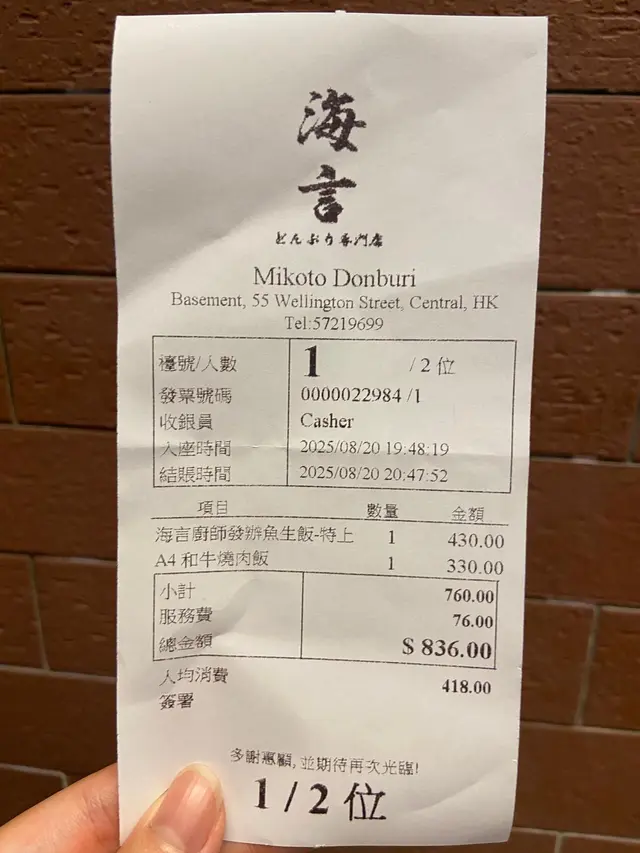 今次去到中環發現咗一間隱世日式料理-Mikoto Donburi,喺中環威靈頓街嘅地庫入面。店內裝潢係日式木調風,環境好溫和舒服。每道料理都有內附沙律,茶碗蒸同麵豉湯🍵。一開始會先上沙律同茶碗蒸🥗,沙律嘅配搭好豐富,最特別係個南瓜,綿延得嚟又帶有甜味,醬汁酸酸甜甜嘅感覺好開胃。茶碗蒸嘅蛋面平滑如鏡,用匙羹舀落去嘅觸感已經知唔簡單。蒸蛋十分嫩滑,有魚糕、白果、蟹柳等配料。料理最後會有碗櫻花蝦麵豉湯,用嚟解膩作結剛剛好🙂‍↕️。廚師發辦魚生飯(特上)  由廚師發辦,師傅完全按照時令同埋當日最佳魚貨⭐️,精心設計出層次分明嘅味覺旅程,每一啖都食到佢嘅嚴選同心思。食法都可以跟師傅建議,由淡味嘅食到濃味,確保可以完美品嚐每款魚生嘅鮮味同特別之處。款款都咁新鮮,特別一讚今日嘅拖羅同灸燒,拖羅有雪花脂肪分佈❄️,好肥美,入口即溶,而灸燒好帶出到剌身嘅油脂香💥!A4和牛燒肉飯一上枱就見到和牛油花分布均勻,燒到微微焦邊🔥,粉嫩嘅橫切面超誘人!牛肉用輕燒手法處理,入口即溶得嚟保留到肉香,醬汁甜鹹平衡,唔會蓋過和牛本身嘅油脂甘香。配菜方面有菇,粟米荀同茄子,燒完嘅菇配菜都有微微嘅炭香仲保留蔬菜汁💧。…Read More