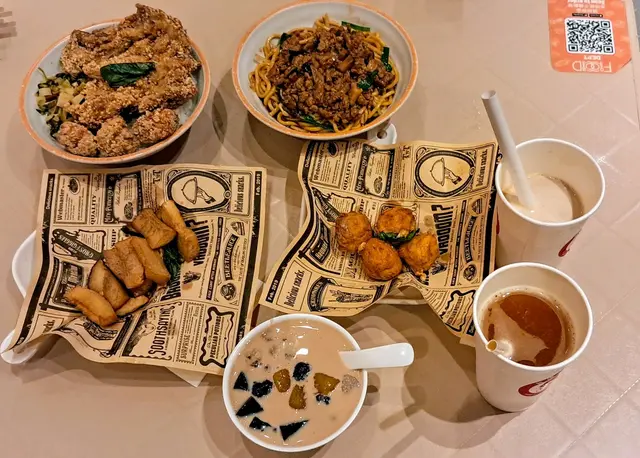 由廚窗見到員工製作大雞扒肉燥飯,大大隻同已醃製嘅雞脾,舖蓋粉漿就拎去油炸,食落好酥脆多汁,再配搭肉燥飯,好滿足。肉燥拌麵麵條有彈性,拌勻濃郁肉燥醬汁,夠惹味。小食:鹽酥拼盤拼盤有鹽酥雞、花枝丸拼杏鮑菇;一啖一口鹽酥雞有椒鹽嘅香味,肉質帶香嫩口感;圓滾滾嘅花枝丸爽脆彈牙;杏鮑菇有綿軟質感。甜品:綜合芋圓芋圓喺台灣傳統糖水,加上淡淡的芋頭香氣,煙韌Q彈,增添仙草同愛玉,口感豐富。飲品:珍珠奶茶圓圓珍珠,口感潤滑,加入絲滑奶茶,珍珠溜走入口。百香果茉莉綠茶清香嘅茉莉,加入酸甜百香果風味,解渴又解膩。我媽的菜地點︰屯門屯順街1號屯門市廣場1期FOODMAZE 2樓2253A號舖…Read More