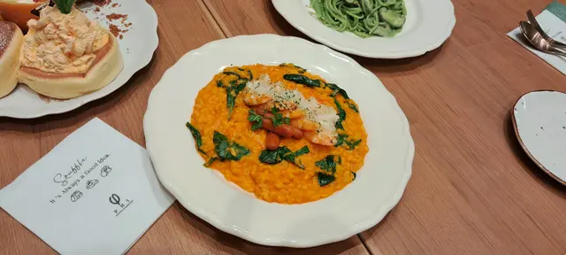 最愛喺Souffle,逛街順道食。PHI Coffee 以木糸裝潢帶文青嘅氣息,最緊要喺有多款 Souffle 選擇。打開餐牌見到多款 Souffle 就心心眼春日香橙焦糖燉蛋梳乎厘,聞到濃郁又香噴噴嘅香橙味,非常吸引!甘筍蝦意大利飯,大蝦爽脆彈牙,配搭甘筍都好夾,意大利軟硬適中有𡁻勁。揀咗開心果帶子意粉,帶子嫩滑多汁,意粉索晒開心果汁,so yummy 😋 揀咗開心果咖啡,醇厚嘅咖啡加入開心果,好醒神!焦糖脆脆咖啡,so refreshing。…Read More