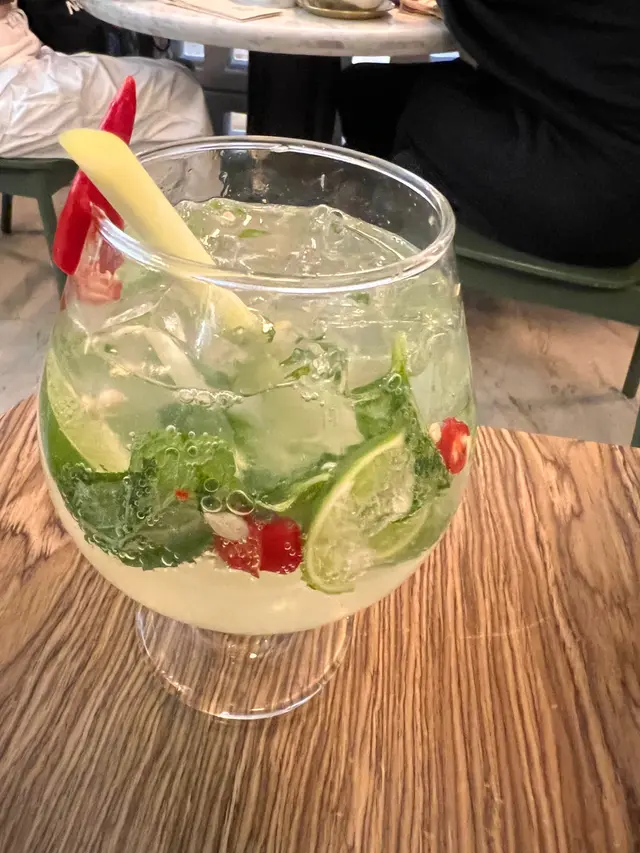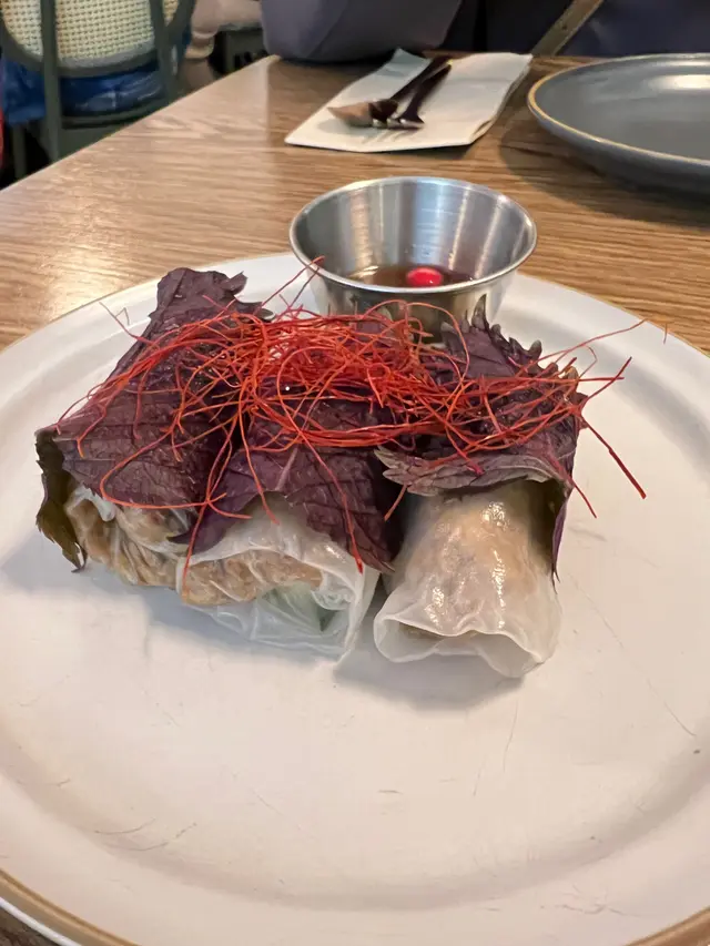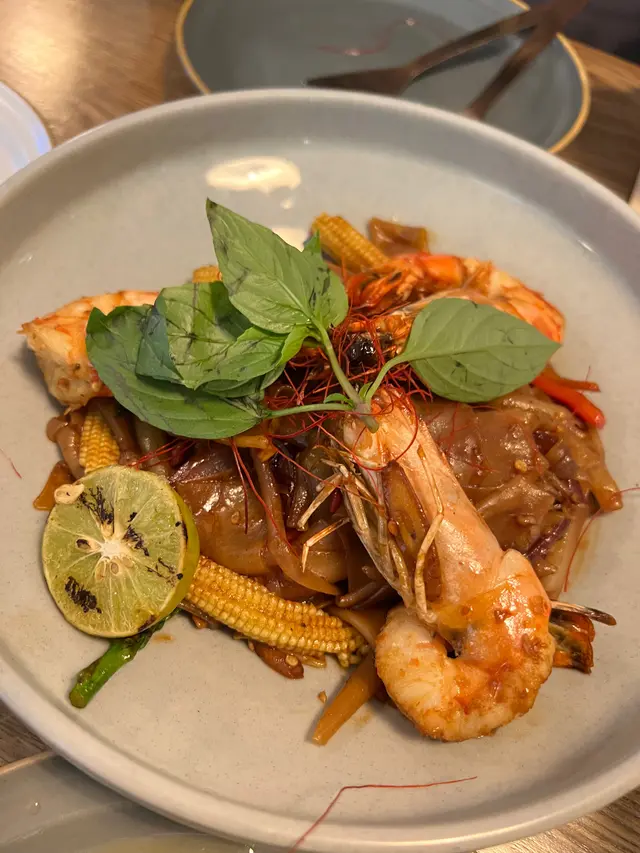 K11中的一間新派泰菜,星期六8:00多還需要等位,不過好彩不用等多久便可入坐。叫了一個安格斯牛肉船河選了卷粉: 配料有豬紅,炸豬皮,牛肉丸,半生熟的安格斯牛肉,芽菜,金不換,通菜,湯底偏甜。虎蝦生薑炒卷粉: 重口味之選,辣味較重,切睡了辣椒和生薑,混合了金不換,但是卷粉放久了會黐埋一舊,有時會咬到薑片,精神為之一振。烤豬肉米紙卷: 裏面有蘿蔔,菠蘿,生菜,烤豬肉竟然是生菜包的豬肉碎,真的十分失望,上面鋪了紫蘇葉扮吓日式。冬陰功清涼特飲: 完全不能和Sevva的對比,這裏的特飲完全沒有甜味,冬陰功味也很淡,加了酒完全只有薄荷,辣味,薑味,酒的味道很淡,一點甜味也沒有。咖啡配泰式奶茶雪條: 奶茶雪條可算是奶茶冰條,加了咖啡和奶後吃到較後的時間才有泰式奶茶味,雪條用來解辣用。…Read More