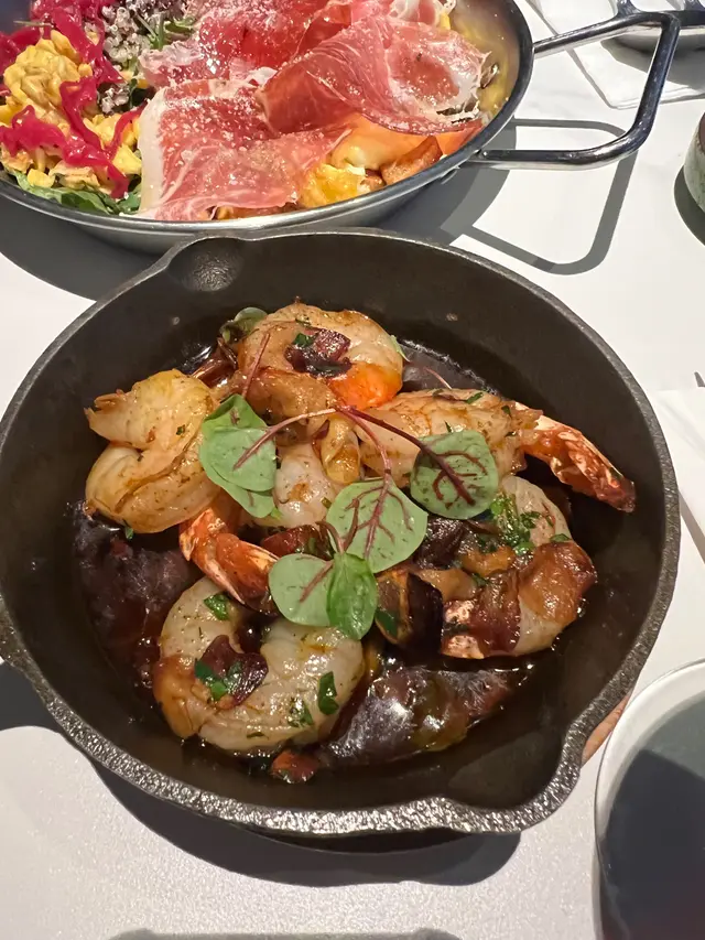 Happy Friday 的聚會好地方,但是位置真的是十分隱蔽,要從小巷或者小巴站那邊穿過大廈在上電梯。食物的質素不錯,但略嫌細份,性價比不是太高。虎蝦90多元只有5隻。巴馬火腿蛋沙律有驚喜,混合起來味道特別。慢煮八爪魚腳也是, size比較細,味道不俗,四個人分每人只吃了2cm,盛惠130多元。銀魚柳多士, 十分香口,也是只是份量比較少。西班牙海鮮飯,些少生米,正正常常。烤乳豬和炸羽衣甘藍,烤乳豬的外皮香脆,但是皮下脂肪太多,肉很少,又是衰在份量太少。燒春雞非常細隻,每人只分到¼,只靠西班牙青椒仔和其他配菜和醬汁拿分數。…Read More