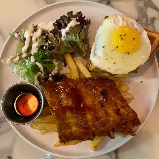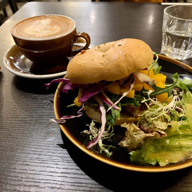 即日食即日出,事關我好鍾意食bagel,平時就食開@blendithk 嘅bagel,呢個我之後一定會介紹,即管去買隻隻都好食冇伏😭❤️大愛。香港賣bagel嘅地方唔算多,好食嘅更加係難得,今日又俾我食到間好食嘅😆Hot Town Pulled Bagel ($98)中間夾著自家製燒烤醬配手撕豬肉,燒烤醬不過鹹又夠濃味,不會過油,下面那層包吸飽醬汁🤤餐牌上寫着夾菠蘿,但應該是沒有菠蘿,我那個是夾杏桃🤔想不到意外地搭又好吃😋bagel上層塗滿忌廉芝士,香濃滿足,加上杏桃的酸甜和火箭菜的清新,一點也不膩。旁邊的沙律菜新鮮、有醬汁配,不會沒有味道像是在嚼草😂Flat white 價錢沒有留意,我是平日午餐時段去吃,不用加錢。咖啡不錯👍🏻味道帶微酸苦澀,香氣足有餘韻,咖啡味留在口腔挺久。最後都要提多次,同我去買爆 @blendithk,最近冇得出街,係屋企食bagel就啱晒,買幾打囤係屋企早午晚食都得🤤懶人就買埋cream cheese我冇賣廣告架自己真金白銀買😬…查看更多