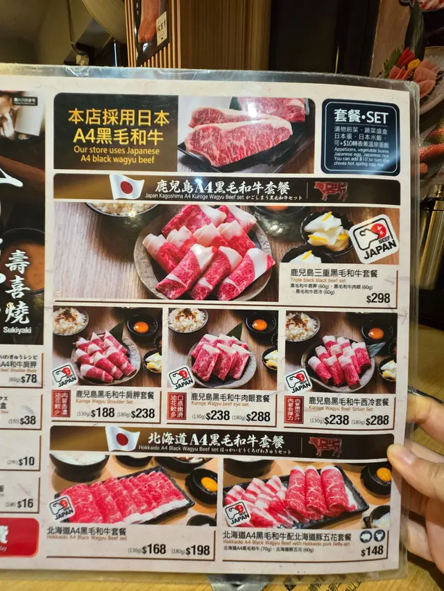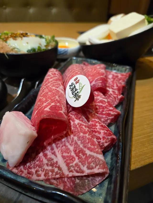 餐廳係環境好舒服,卡位多,坐得好自在。午市套餐選擇都幾多元化,啱晒唔同口味嘅人。我哋就揀咗佢哋招牌嘅壽喜燒套餐——北海道A4黑毛和牛套餐(130g),真係好吸引。前菜有柚子大根漬物,清新開胃,香蔥溫泉蛋飯,蛋香濃郁,飯粒分明。主角和牛先用牛油兩面輕輕煎香,之後加入壽喜燒汁, 沾上蛋液,牛肉入口即溶,油脂分佈靚,味道層次豐富,壽喜燒汁唔會太甜。最後落埋鰹魚汁,加入蔬菜和豆腐,真係大滿足。另外仲有壽司五貫配免治和牛壽喜燒湯烏冬,三文魚、拖羅蓉、蝦刺身都新鮮,烏冬滑溜,湯底夠味,漢堡肉又夠多汁。飲品方面,香茅鴨屎香檸檬茶好清新。甜品有期間限定開心果雪糕同青檸雷葩,開心果雪糕香濃滑身,青檸雷葩酸酸甜甜,食完好解膩。打卡仲有全單減$10,抵食又有得玩。餐廳環境舒適,食物質素高,服務都唔錯,午市套餐性價比高,值得再嚟試其他菜式!…Read More