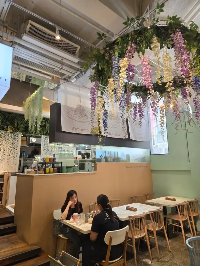 呢間素食餐廳係朋友推介,開喺花店入面,環境好舒服,坐低已經聞到花香,氣氛好chill。今次我哋揀咗特上套餐,包括前菜、主菜、甜品同飲品。前菜有磨菇湯同蔬菜春卷。磨菇湯菇味濃郁,質感幼滑,飲落去好暖胃。春卷外皮脆卜卜,餡料新鮮,唔油膩。香芒沙律用咗羽衣甘藍同新鮮芒果,醬汁酸甜開胃。乾鍋菜花有驚喜,辣味同麻香好突出,好入味,食到停唔到口。主菜的肉醬大啡菇配菠菜批都好正,大啡菇多汁,肉醬味道同真肉好似,菠菜批唔會太膩。忌廉芝士牛肝菌扁意粉忌廉香滑,牛肝菌味濃,意粉煙韌。甜品我揀咗抹茶雪糕同凍椰奶西米露。抹茶雪糕茶味濃郁,唔會太甜;椰奶西米露椰香突出,西米煙韌。飲品方面,西瓜沙冰同菠蘿荔枝沙冰都好清新解渴,啱晒夏天。總結嚟講,呢間餐廳環境舒服,食物有水準,素食都可以好有層次同驚喜。無論係素食者定普通食客,都值得一試!…Read More