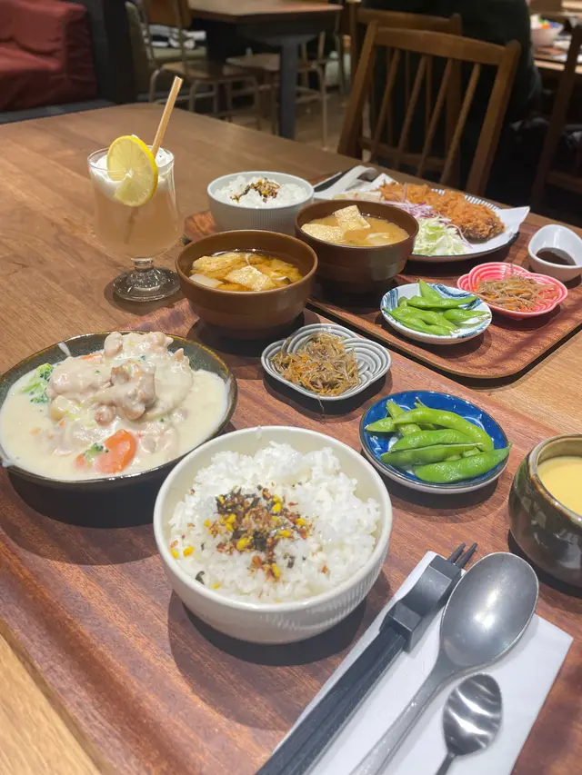 很久都沒有到過觀塘吃晚飯,突然被這間校園特色風格的日式飯堂吸引。只可以說,這間餐廳除了室內設計風格特別,食物的性價比也很高。連定食配搭的味噌湯也很足料,有幾隻蜆。🚩燉薩摩雞腿配日式奶油磨菇定食 $193另加茶碗蒸,長野県產蜜桃汽水日式奶油蘑菇的醬汁很惹味,用來伴飯一流,而且雞腿亦很入味。而另外家的茶碗蒸的雞蛋很滑,非常值得一試。🚩日作厚切吉列北海道豚肉眼扒定食 $168厚切豚肉眼扒真的名不虛傳,的確是大大嚿的厚切豬扒,而且肉質鮮嫩,咬下去亦很juicy。🚩南蠻唐揚炸雞 $58炸粉的配搭剛剛好,脆得來不會太厚,而且雞的肉汁也保留到。🚩醬燒安格斯牛肋肉1串 $35牛肉非常易入口,一咬即開。…Read More