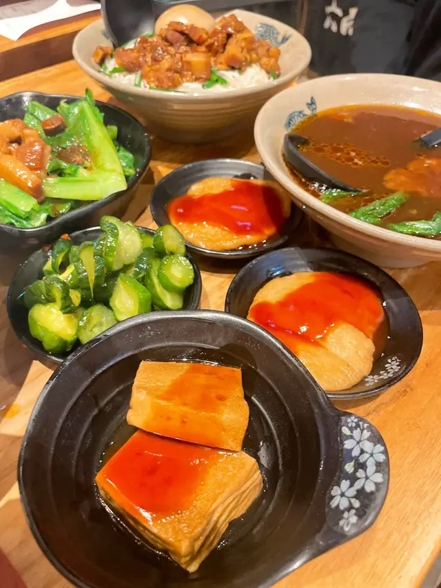 尖沙咀這附近就去得多,但從來沒有轉入這條小巷裏面,想不到竟然有這間這麼好吃的台灣菜在小巷裏面。然而,雖然它在小巷裡,但晚飯時間仍然full house。這間台灣店吃湯麵有一種特別款式,牆上會貼有一張圖片,教導食客用不同的食法吃出湯麵的獨特味道。🚩手打牛筋丸麵+糖心蛋+百頁豆腐半份+滷甜不辣半份+無糖白桃烏龍茶 $114我首先跟着圖片先吃一啖面,再喝一啖湯,然後叫了店員給一份牛骨髓辣油加入湯種,辣油不算太辣,不過我比較喜歡沒有加入辣油的湯底,可能是我本身不喜歡太油膩的感覺,但辣油的香味也出眾,值得一試。另外豆腐很滑,值得加錢要半份試一試。而滷水甜不辣是第一次嘗試的口味,個人比較喜歡普遍的炸甜不辣。而值得一提的是,手打牛筋丸juicy,內裏有爆汁的感覺。🚩滷肉拌麵+糖心蛋+ 滷甜不辣半份+涼拌小黃瓜半份+冬瓜茶 $92滷肉拌麵比想像中出色,滷肉的口感入口即溶,不會太嚡熠熠,亦不會太油,非常推薦滷肉。而小黃瓜的孫甜度適中,非常容易入口,是一道很好的開胃菜。尖沙咀這附近就去得多,但從來沒有轉入這條小巷裏面,想不到竟然有這間這麼好吃的台灣菜在小巷裏面。然而,雖然它在小巷裡,但晚飯時間仍然full house。🚩滷肉燙青菜 $28雖然青菜上有滷肉,但不算太油膩,喜歡吃菜的我們很喜歡,值得嘗試。🚩紅燒牛肉湯 $62由於我們吃台灣菜覺得要吃牛肉,但由於主菜沒有叫牛肉,所以就叫了一碗牛肉湯,而牛肉湯的牛肉份量很多,口感很好,入口即溶。…Read More