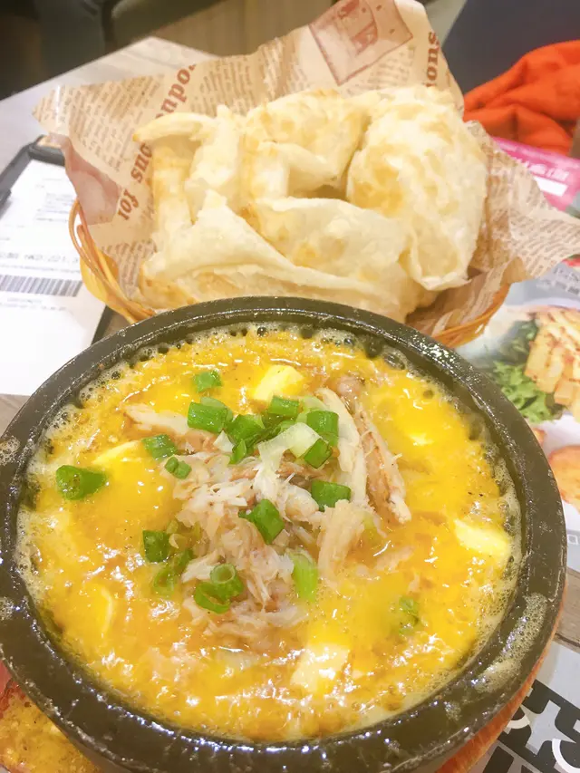 今晚朋友突然話好掛著蟹粉豆腐鍋嘅味道 於是去左沙嗲王蟹粉豆腐鍋 一如既往好味 蟹粉味滲透咸蛋王味 好邪惡 蟹肉就比平時多左薄餅好鬆軟 好大塊 配呢個鍋真係絕配呢個新出嘅組合都好抵食 4十幾蚊有埋野似滑蛋香茅豬扒飯 豬扒醃得好入味 每一啖都有香茅味仲有呢個黃金軟殼蟹好正 用咗好多鹹蛋黃去炸隻軟殼蟹食落口充滿鹹蛋黃同鹹蛋黃嘅油 食完真係罪惡感爆棚太多咸蛋黃嘅關係兩個人都食唔晒呢度嘅野環境方面呢度啲位都幾闊落 坐得都幾舒服 餐廳都算乾淨…Read More