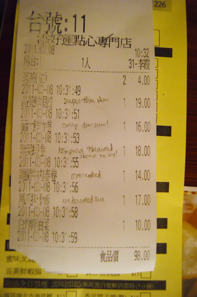After arriving at the front door at 10:25AM, we were seated in less than 5 minutes. Contrasted with the Mong Kok branch where the wait was over 30 minutes at the same time, this is a huge difference. The Sham Shui Po branch has much more seating and is a much larger restaurant.As other reviewers have noted, the service is a bit harried and a bit disorganized, and sharing tables is the norm for small parties. However, I consider this to be a standard part of the ambiance at traditional Hong Kong dim-sum restaurants. The more important things were in order -- the utensils were clean, and the order was filled properly with no mix-ups. Now, let's talk about the food!1) The shrimp dumplings had a relatively thin wrapping, which was delightful. The shrimps themselves were not as 'crunchy' as I had hoped, but I still give this dish full marks.2) The Portuguese-sauce tofu-roll dish was a new dim-sum item to me.... I could have taken the sauce and poured it over the rice and it would have been great! If you like curry, you should try this interesting dish.3) The shrimp tempura with seaweed was also an unexpected fusion blast. They should serve this at sushi restaurants. The only downside is that the seaweed seems to have made the shrimp taste overly salty. 4) The fried spring rolls were visibly overcooked when they arrived, but not so overcooked that I would complain. C'est la vie! 5) The pork ribs with chicken feet rice dish had rice which is (probably) deliberately a little bit undercooked or harder than I am accustomed to. It seems nicer this way -- and I would order this dish again.Food quality, presentation, and service level appear to be comparable at both branches, so I would come to this one if I were going again.Compared to other dim-sum restaurants, I think this particular restaurant has hit on a mix of having the traditional setting with some more avant-garde fare to distinguish itself from other places. However, the quality control could use some improvement -- looking at other people's reviews, it's clear that we seem to have had varying experiences with the same dish. I'll bring friends who are visiting Hong Kong to this restaurant for the novelty factor.Note to all: If you want to know the Chinese names of the items ordered, please see the photo of the bill attached to this review. I wrote about them in sequence above.…Read More