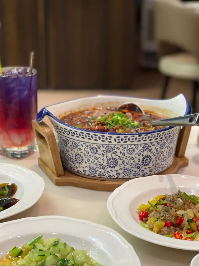 餐廳顧名思義有川菜同粵菜菜式同裝修都一樣咁精緻而且呢度位於 V Point 28 樓遠眺維港景觀開揚 【青椒皮蛋】涼拌皮蛋有溏心效果口感黏稠濃郁好味加上鮮辣嘅青椒絲 🫑味道好有層次  【酸辣魚皮】桂花魚皮十分爽滑彈牙同樣係辣味嘅涼菜但辣中帶酸越食越過癮開胃 😋 【幻彩荔枝養生花茶】夢幻嘅顏色來自碟豆花同洛神花呢杯冰凍嘅荔枝花茶甜度啱啱好賣相好睇之餘又好飲 🌈  【蒜泥拍青瓜】蒜泥拍青瓜清爽入味仲可以幫手解解辣,哈哈 😝 【黃金南瓜】南瓜清甜軟糯 🎃 裹上鹹香嘅黃金外衣估唔到係咁夾!唔需要炸已經非常香口 【水煮滑牛肉】天氣轉冷食鍋熱燙嘅水煮滑牛肉啱哂麻麻辣辣充滿辛香料香氣牛肉嘅肉質保持嫩滑仲有鴨血同滑溜寬粉吸咗麻辣湯後極惹味 【紅糖冰粉】冰粉比起涼粉幼滑得多清清涼涼消膩添加咗西瓜同花生碎粒 🍉 食落更有咬口…Read More