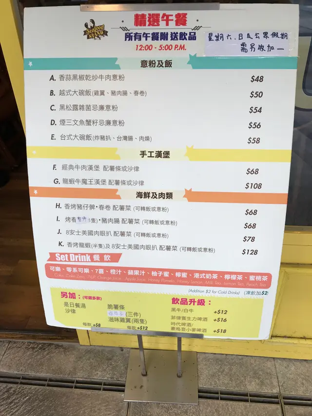 中午套餐一試 Seafood Stand 2019-10-04第一次幫襯呢間店舖見到無人排隊所以入去試一試啊分量因為成年人係足夠食味道一般招呼就好好台式大碗飯,豬排太晏,扣左分,台式腸幾好食餐廳有小朋友餐具好貼心,服務員招呼幾好總評分3星…查看更多以上食評乃用戶個人意見 , 並不代表OpenRice之觀點。讚好分享中午套餐一試 Seafood Stand https://s.openrice.com/QrKT0zIWR00檢舉 張貼 評分3味道3環境3服務3衛生3抵食推介美食台式大碗飯(炸豬扒台灣腸肉燥)用餐途徑Dine In