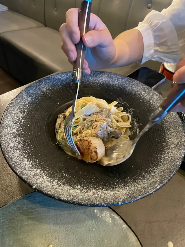 同女朋友週年紀念嚟咗屯門新墟嘅嚟間Tipple Bar & Kitchen。門外有射燈將餐飯logo 打落牆,非常易認兼有signature。餐廳以螢光藍色做襯托,有種stylish而有格調嘅感覺。同女朋友嗌咗餐廳嘅2人套餐,包括龍蝦餐湯 竹炭麵包 白酒忌廉煮青口 帶子蟹肉意粉 主菜和牛肉眼扒 最後甜品係榛子朱古力雪糕。食物有水準👍🏻和牛肉扒有肉質而有咬口 亦有適量脂肪 會有入口即溶嘅感覺!最後staff都好有禮物 耐心介紹餐廳嘅signature同推介💛一定會再嚟!…Read More