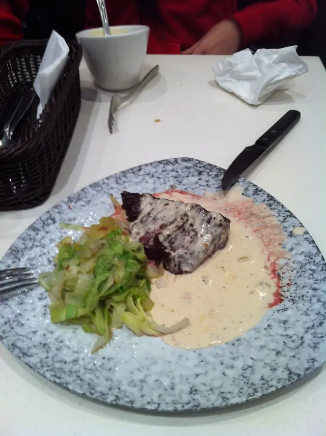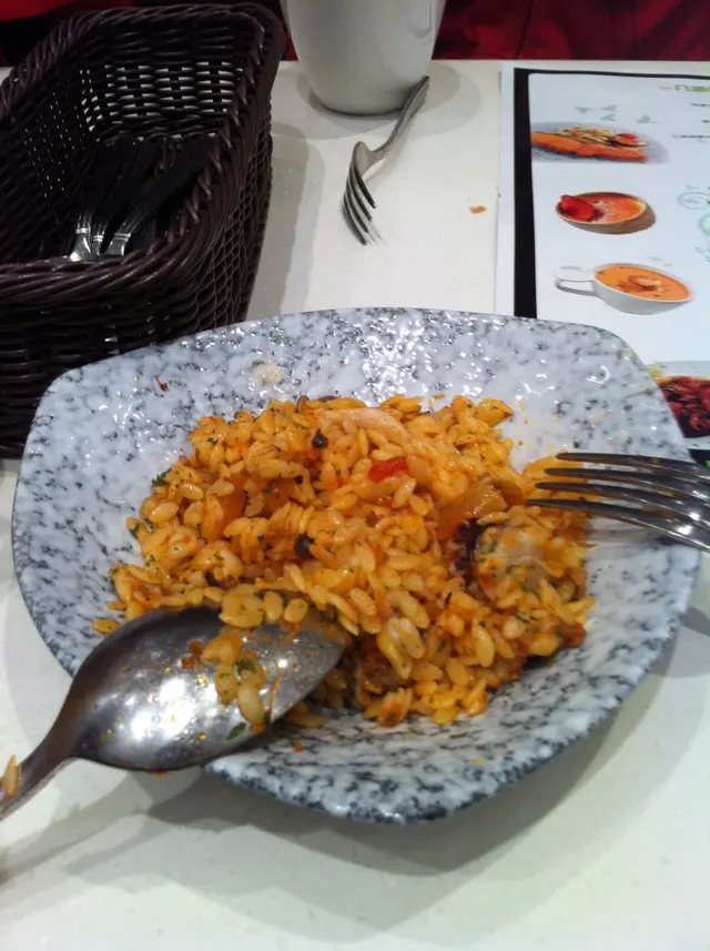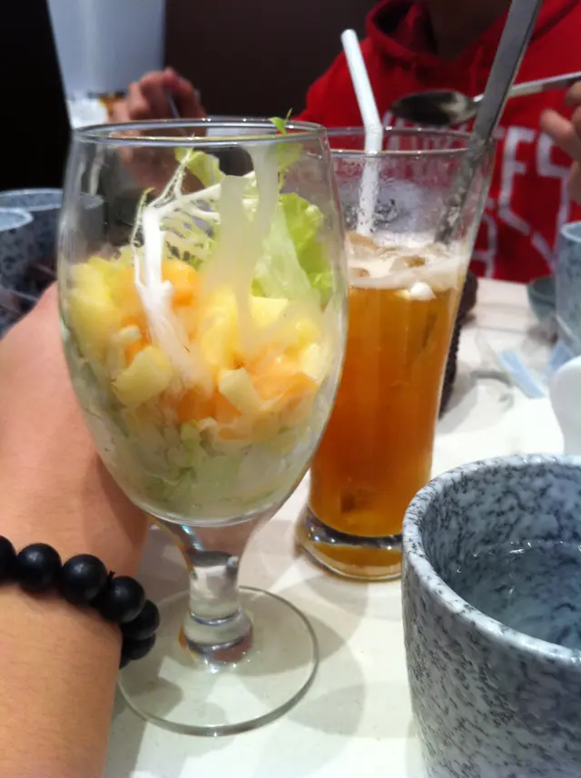 set dinner有8樣野由頭盤到甜品 每樣都有得揀只係$128 另有108心大心細揀左好耐先落單落完單5min都有,我發覺我地係冇餐具,水,紙巾作為一個西餐廳,連基本既步驟都唔記得,,,第一樣菜來了,是羅宋湯,我話我地叫左法式龍蝦帶子湯個waiter話賣晒ok,這是第一個之後綠茶雪糕變楊枝甘露意式炸蝦球變海鮮米型麵和風芝麻海鮮沙律變香芒沙律前菜係冇得揀仲有個咩烏梅汁個dish都冇上(我走左先知漏上呢樣野)果8個菜除左個main dish之外,都唔係我揀個waiter咩野都話賣晒,落單前又唔講