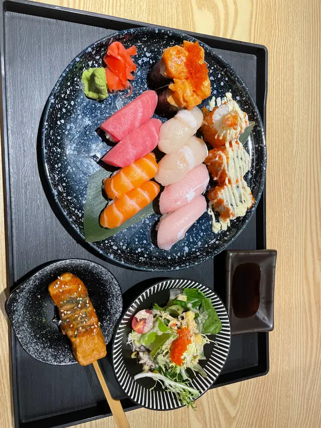 最近好多朋友都去日本旅行,搞到我都心思思想食日本野,見駱駝漆有間新開嘅日本餐廳,就決定上嚟試下。依度星期六晚市都唔算太多人,崴餐廳裝修充滿日本風格,啱曬三五知己一齊上嚟食飯傾計。餐廳食物選擇超級豐富,壽司、丼飯、拉麵都有,連小食嘅選擇都好多。我見餐牌嘅壽司set幾吸引,就叫咗個壽司盛盒。我朋友唔食魚生,就叫咗個丼飯set。梅壽司盛盒套餐($139)依個壽司set超抵食,有成12件壽司,仲要大部分都係魚生。魚生件件都好厚切,特別係個帶子壽司,超級厚身,而且好鮮甜。個set仲包咗個細沙律同雞肉棒串,個沙律超多蟹籽,個雞肉串啖啖肉,完全冇因為跟餐就送就hea 人,女仔食曬成個餐都幾飽下。鹽蔥燒牛肋肉丼($86)依個飯係我朋友叫嘅,偷食咗佢一啖個牛肋肉,個牛肋肉好淋好香,有成五塊之餘每塊都幾大塊舊,加埋撈咗蛋黃嘅飯真係好好食。個餐除咗跟個麵豉湯同沙律之外,仲有兩個泡芙做甜品,真係好抵食。…查看更多