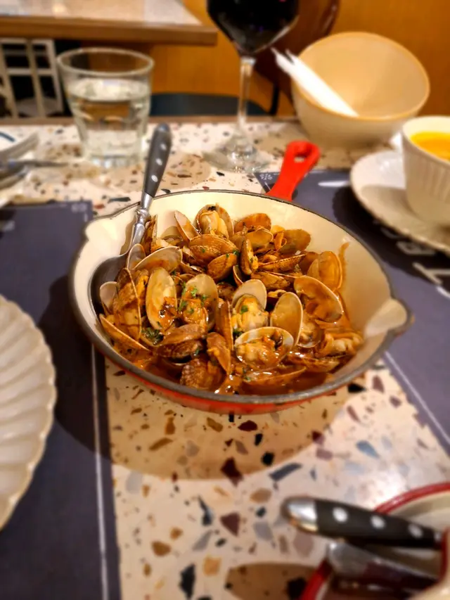 工作忙碌一定要鬆一鬆,今晚來這間法國餐廳嘆法式二人套餐頭盤有三種選擇,包括蒜香蘑菇忌廉汁煮蜆、法國田螺配辣肉腸、燒豬腩。我們選了煮蜆做得不錯,忌廉汁滲入蜆中非常好吃主菜叫了阿根廷安格斯肉眼牛扒🥰牛扒半熟做得非常好,能鎖住肉汁,但保持牛扒的鮮嫩軟殼蟹墨汁意大利飯也很美味。意大利飯做得軟硬適中。第一次吃用墨汁做的意大利飯,原來配搭不錯。軟殼蟹炸得夠香脆,要比like 👍🏻蘋果派可麗餅我朋友很喜歡,不會過甜套餐叫葡萄酒有折, 當然要試吓!白葡萄酒甜甜地又易入口,甜中帶清香味這間在將軍澳PopCorn商場的法國餐廳,有美酒和美食,值得推薦!…Read More