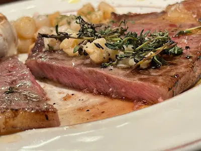 放工後約了友人到太子用膳,試了一間西餐廳 The Steakhaus。餐廳裝潢懷舊復古,氣氛頗配合品嚐傳統扒餐。安格斯 Prime 西冷 8oz 配烤大蒜 ($118) 沒有熟度選擇,出品切面粉嫩約七成熟。西冷口感一向帶嚼勁,但因薄切處理食感不會過韌。Prime 級的牛扒食味富一定水準,配上搶香蒜蓉佐料更合小編口味,亦能呼應烤大蒜配菜。煎小扇貝 ($58) 是外加伴碟菜,小編原以為是烤連殼扇貝,最後變成一份炒小柱,與預期有少許落差。另外,這份伴碟的定價約為主菜的一半,比例上亦見進取。另一主食滿滿蜆肉蝴蝶粉(雙倍蜆)($198),因大家均喜歡吃蜆肉,故特意點選了雙倍蜆份量。出品蜆肉堆砌得滿滿,沒有欺場。海蜆雖然不算大隻,但味道挺鮮,配上的醬汁帶小辣,亦十分可口。相比之下,蝴蝶粉份量明顯少得多,建議同時追加蝴蝶粉的份量,使菜式食材比例更均衡,亦可更善用美味的醬汁。西班牙油炸鬼配雪糕 ($58) 屬小編喜愛的甜品之一,每次遇上均不會錯過。油炸鬼脆脆的,肉桂味濃香,與開心果雪糕一冷一熱交替品嚐,份外滋味。鐵觀音奶茶 配咖啡凍 ($48) 可算是 fusion 特飲,以中式鐵觀音作奶茶茶底,味道固然比一般奶茶特別。因鐵觀音口味上比較清淡,故配上的奶底都相應調薄,不會搶去茶底風頭。奶茶中加入咖啡凍,相信是想做到鴛鴦的效果,但實際效果不算特出。好友選了一杯雞尾酒青蘋果 Mojitos ($78),淺嚐了一口,酒味不算重,味道清新,配上濃味的牛扒或炸製的伴菜皆合適。整體而言,是晚在 The Steakhaus 的用餐體驗都算不俗,可以一試![14/4/2025;Mon]…Read More