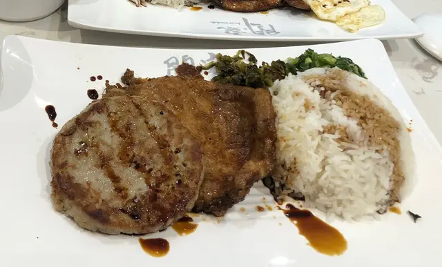 香煎蓮藕餅豬扒飯 $50 飯除咗蓮藕餅同豬扒之外,仲有跟蔥油同酸菜。香煎蓮藕餅係軟淋淋冇咁實,味道方面正正常常;豬扒就睇過介紹係用人手揼嘅,好薄好薄所以口感偏淋,食落都有啲油膩。另外蔥油同酸菜,個人覺得有蔥油配住食都足夠,因為酸菜陣味同啲食物唔太夾,有少少浪費咗。整體而言,成個飯嘅味道中規中矩。唔知係咪因為唔落味精所以怕食物唔夠味,調味都偏鹹咗啲,再加埋嗰飯都淋咗幾多豉油落去。同埋自己睇太多網上食評,所以都抱住好大期望去食,食完反而覺得只係似普通碟頭飯,冇咩特別驚喜。不過老火湯真係幾好飲👍🏻而當日嘅員工即使好多客人都keep住有禮貌。…Read More