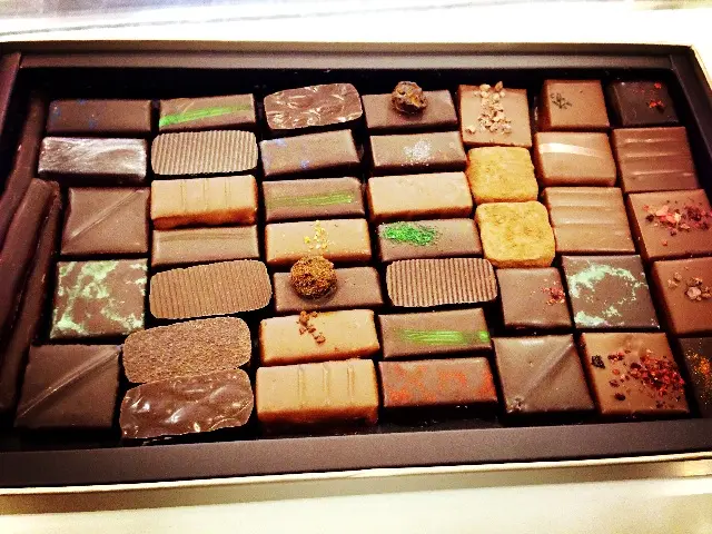 Here are some of my favorites: Sao tome chocolate: I sampled the sao tome dark chocolate and fell in love with it instantly...I decided to fill my box with a lot of them... It's a very rich and fudge-like dark chocolate with 75% cocoa content. Green tea chocolate: the green tea is very fragrant (not to confused with matcha) yet very light and refreshing. A bit bummed that it only comes in milk chocolate. Cassonade truffle: I generally prefer chocolate squares over truffles but the crunchy truffle "Cassonade" they serve here are quite interesting since the outer layer is caramelized. I would highly recommend this one it's indeed quite uniqueIrish Coffee truffle: The is definitely my FA-VO-RITE alcohol chocolate!!!!!! Very very smooth irish coffee whiskey blended with the rich and creamy milk chocolate ganache filling; the alcohol is very strong but it works perfectly with the chocolate and balances out its sweetnessDried fruit mendiant: My mom tried the dried fruit mendiant and she really liked the apricot The staff was helpful and offered some samples, but when I requested to try truffles they said its not available for sampling :S …Read More