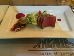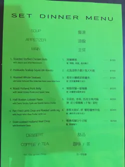 一間只有6張枱的精緻西式餐廳,門外裝潢帶著歐陸的味道,因朋友推薦所以到此一試。餐廳是買中上級歐陸風菜式,所以價錢不算很平,但以價錢與食物質素來說,價錢還算是合理,如果在銅鑼灣中環尖沙咀區用這價錢絕對吃不到這品質的食物和服務。我們二人點了兩入set dinner,先來一份三款的麵包,再來蘑菇湯,蘑菇湯不會太鹹,蘑菇味十足。再到頭盤,是煙吞拿魚沙律,好吃!之後到主菜,用料食材新鮮。再來甜品和餐飲全餐用了大概一個半小時。
