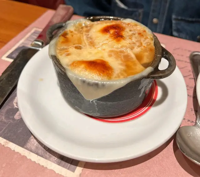 Bouchon Bistro Francais中環蘇豪伊利近街49號地下Tartar de Boeuf 130g $48Beef Tartare 唔算太碎,口感亦相當唔錯都幾chunky,牛既香味放落口湧晒出黎,我比8分Soupe a l'Oignon (L) $18呢個係一碗洋蔥湯,外面有一層好香好厚既芝士鋪係到溝埋濃郁既洋蔥,比我想像中唔會太鹹,相當好味Steak Frites $28叫左個medium rare既steak,外層有少少焦而入面肉質好嫩滑,咬落去咇晒肉汁出黎再加埋份量好多既薯條,兩個字飽晒總括黎講,第一次食法國野覺得味道好正同好飽,基本上價錢亦比想像中平非常抵食,自己就再叫左杯紅酒嘆下牛好過癮…Read More
