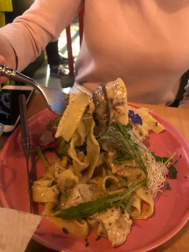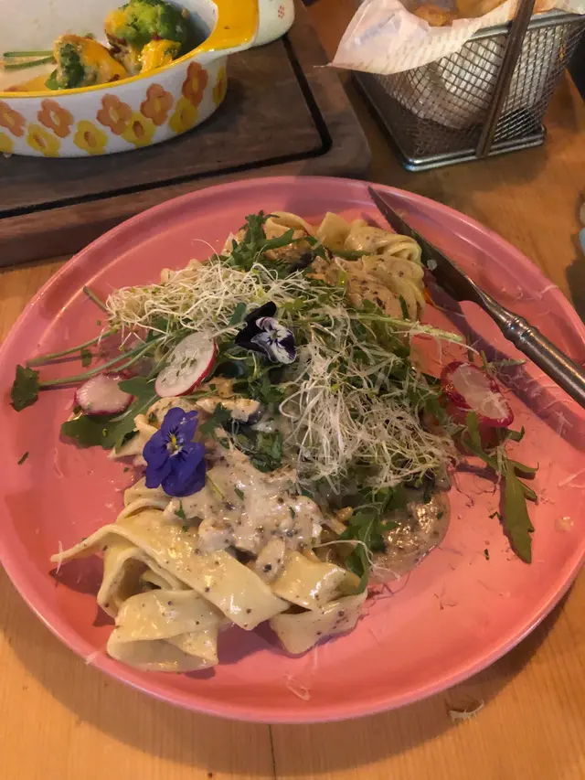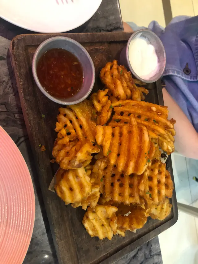 平日下午和朋友嚟到食午餐,位置算係超級方便,地鐵站行2分鐘就到。裝修好靚,應該可以打卡,不過坐出面嘅位置比較好影相。廁所在舖頭外面少少唔方便,不過衛生OK 。朋友和我嗌咗兩個主菜和一個小食。其實我上網被個薯條吸引而來的。🧀🥓🍳🍟依利比亞火腿芝士太陽蛋薯條個薯條比我想像中普通,因為芝士比較硬同埋冇我想像中咁流動就係幾樣我好鍾意嘅嘢食加埋一齊,不過不失。🍝黑松露雜菌芝士忌廉粗管通粉通粉我覺得軟硬適中,唔會太冧。醬汁偏稀身,都掛到通粉。雜菌嘅份量好多,每一啖都會有菇同埋通粉。 芝士味都唔算明顯。🍙🌟慢煮焦糖豬腩肉配香烤飯團及炸藕片🌟有驚喜,最好味係個豬腩肉慢煮好Juice,可能係豬腩肉,所以脂肪令到舊肉好滑好香,豬皮炆得好腍,配埋伴碟嘅青瓜片,一齊食好解油膩好爽👍🏻👍🏻飯團烤得啱啱好🥤ice americano: fruity 下次會想試埋dinner 🌝…查看更多