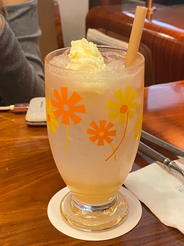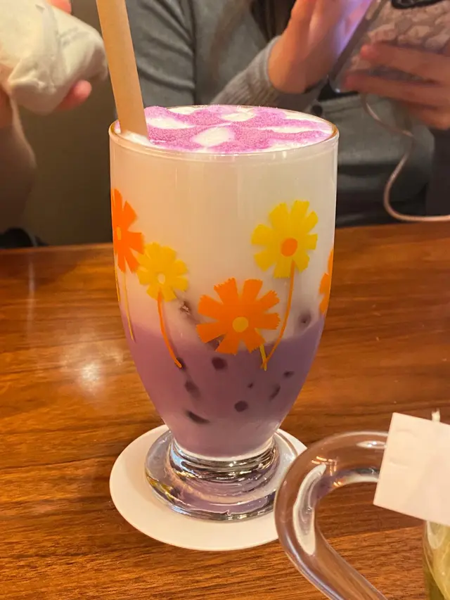 朋友分別點樣白桃梳打同埋紫薯牛乳,成杯整出嚟都幾好睇,好有日本咖啡店嘅風格。