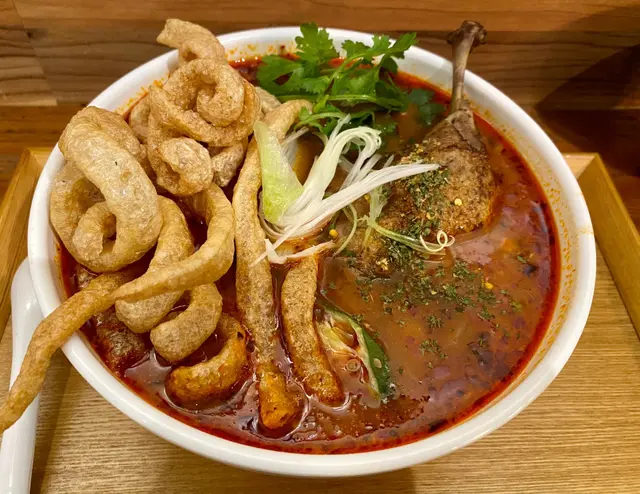 Bookmarked 咗好耐終於幫襯咗,叫咗冬蔭蕃茄鴨腿湯金邊粉,湯底夠濃郁,好少食鴨腿,而鴨肉都襯湯底的味道,反而嫌那些炸豬皮頗靭不太喜歡。下次再試埋自家漢堡。…Read More