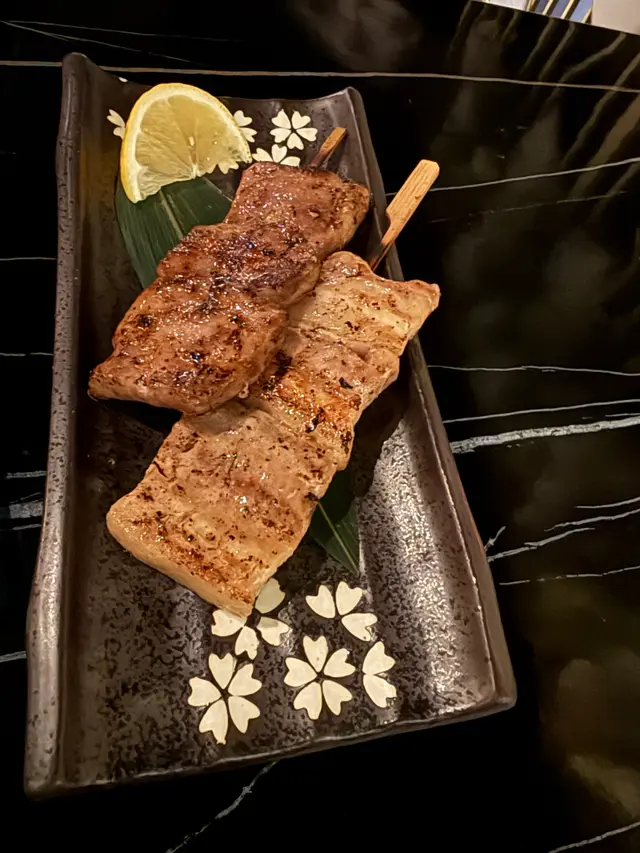 今次同朋友第一次食呢間餐廳,整體感覺幾好,食物質素對得住價錢,環境同服務都令人滿意。先講串燒類,燒牛舌心串確實有驚喜。牛舌厚切得恰到好處,炭火控制得幾好,外層微焦香脆,內裡保持到juicy口感。加少少岩鹽同檸檬汁,簡單調味已經帶出牛舌嘅鮮味,食落完全唔韌,值得encore。日本黑豚五花腩串肥瘦比例剛好,炭燒後油脂溶化得幾均勻,配埋甜甜地嘅日式燒汁,食落香口得嚟唔會太膩。脆炸芝麻雞翼炸得夠脆口,芝麻份量適中唔會過多,咬落去"咔嚓"聲好治癒。雞肉保持到嫩滑,證明油溫控制得宜,唔會食到成口油,作為佐酒小食好適合。加拿大斧頭豬扒份量十足,肉質鬆軟唔鞋口,食到冇蓋過豬肉本身嘅鮮味。主菜方面,松露蟹膏意粉確實係招牌之作。蟹膏醬濃郁得嚟唔會過鹹,每條意粉都均勻掛汁,松露香氣突出但唔會搶味。意粉煮得al dente,整體配搭平衡,係會令人想再食嘅菜式。餐廳環境乾淨企理,座位唔會太逼。服務員態度友善,上菜速度合理。價錢方面算係中上價位,但食物質素對得住個價。整體嚟講,呢度嘅食物水準穩定,特別適合三五知己聚餐,或者想食餐好少少嘅時候嚟幫襯。…Read More