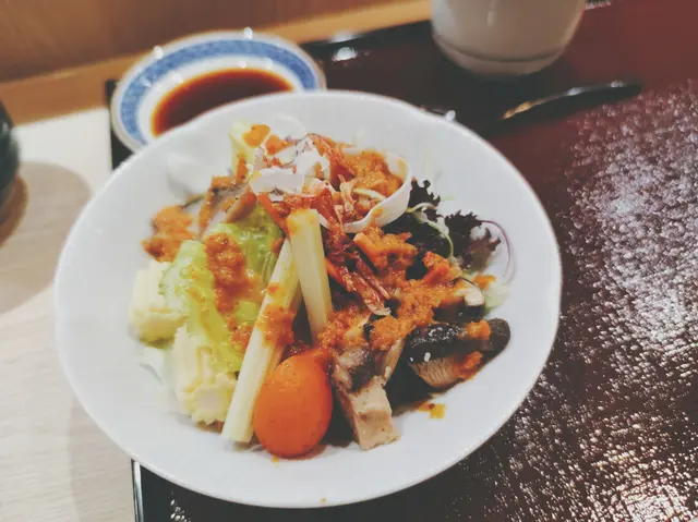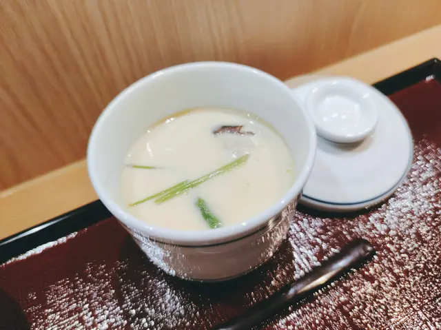 沙律菜配上以酸甜調味的紅蘿蔔蔬菜溶附上洋蔥的微辣感,醬汁非常開胃,鯖魚乾連蝦乾的提鮮,芹菜、粟米筍的爽,車厘茄的清甜,除了,冬菇就是冬菇。前菜茶碗蒸滑滑的雞蛋羹配上微甘白果。主菜大滿足的江戶前散壽司(特上)配麵豉湯