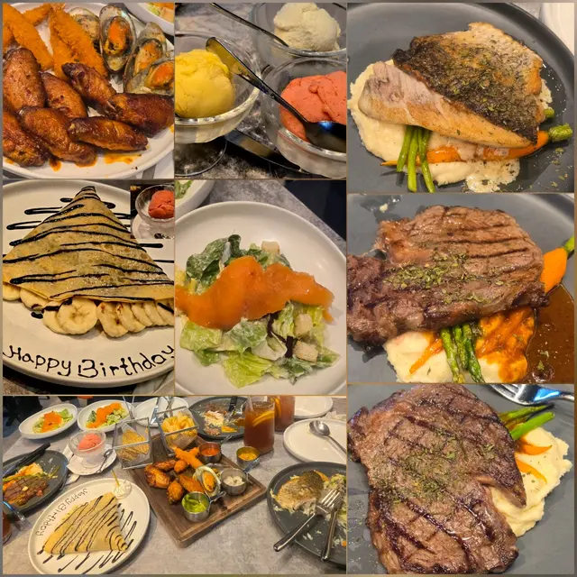 即日Openrice 預購本來想去旺角店,但預訂滿座,唯有去利東街分店,雖然兩層但不太寬敞,幸好安排我們坐卡位👍。因為只有90分鐘,所以就即下單主菜,飲品,店員說會首先上一份齊全的小食,但來了一份三文魚沙律後,主菜飲品都到齊,等了差不多半小時才出小食,可能是星期五,客比較多,廚房接應不暇!安格斯牛排不錯5成還算嫩口,可推薦!因很多套餐安格斯是要加錢。鱸魚就正常稍為淡口,要點醬! 酸甜的士多啤梨雪葩很解滯,美中不足沒有朱古力雪糕! 可能當晚客多,人手不足,店員下單有點甩漏,有點不耐煩,如果平日可能會好些,餐廳餐牌也是$298,不過openrice 就$298包加一,所以不知道餐廳是否$298要加一?…Read More