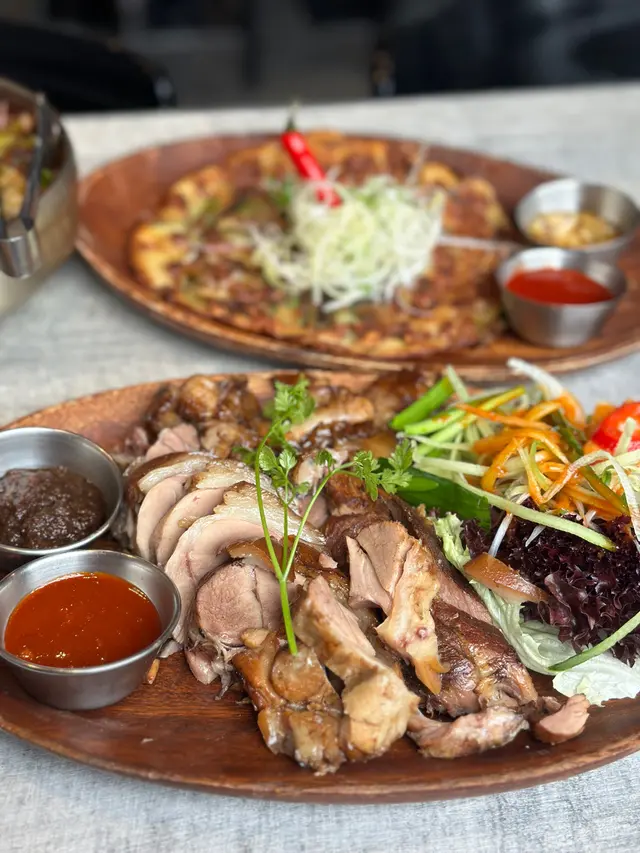 旺角特色韓國菜🇰🇷炸雞真係冇得輸生牛肉沙律好新鮮,牛肉好嫩滑,配上清爽嘅沙律菜同埋醬汁,口感好豐富半半炸雞真係好吸引,炸得香脆,而且有啲辣辣嘅味道。份量亦都好足夠哇可以同朋友一齊分享。值得一試! 如果你鍾意辣嘢,記得要叫多啲大邱辣醬。佢嘅辣味夠香夠辣,可以提升炸雞嘅風味。蜜味乳酪粉係一個特別口味,甜味好順口,同埋好滑嫩,可以增加一啲甜蜜嘅口感八爪魚煎餅好特別,餅皮煎得金黃酥脆,內裡有八爪魚肉,味道鮮美。份量都好夠,好滿足食慾。推薦莫索里拉芝士排骨真係好吸引,排骨炸得香脆,芝士融化嘅口感好好食。呢個菜式好適合芝士控!醬豬蹄係一個受歡迎嘅傳統菜式,豬蹄煮得軟滑,配上醬汁,味道好香濃。如果你鍾意豬蹄,呢個係一個不錯嘅選擇。…Read More