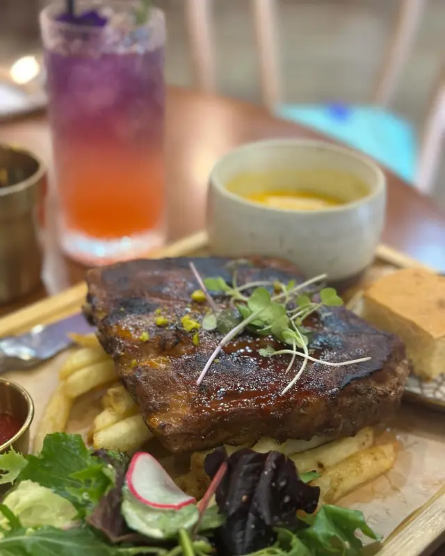 任食牛扒任食薯條觀塘咁高質嘅西餐廳唔可以錯過😍講緊$268就可以任食薯條同埋安格斯牛扒😍一聽呢間餐廳既介紹就感覺好舒服同好chill啊!佢地個個個格局都係超放鬆架,有室內同室外唔同區域可以選擇好適合一班朋友去飲飲吹吹水!睇嚟佢地既餐單都豐富,除咗牛扒之外仲有一啲其他配餐選擇,都幾有誠意架然後我就真心推薦佢地個南瓜湯同凱撒沙律,南瓜味豐厚濃郁,順滑滑有種濃濃既質感,好有飽足感;而個凱撒沙律都好豐盛,青菜新鮮,配埋芝士粉香夠酸甜夠爽口至於佢地既牛扒,真係煎得好好食!肉質勁軟同肉味濃郁,仲好襯牛扒既原味。係次杯都要再試吓!特色調酒我都試過啦,好清新爽口,同佢地既牛扒配得好to the point!最後當然唔可以錯過佢地既甜品,朱古力蛋糕好濃郁,同埋個焦糖燉蛋好靚夠嘢,真係好正呀!…Read More