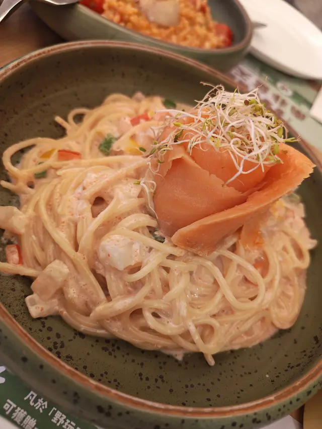 喺尖沙咀鬧市中竟然搵到個傾偈聖地!iSquare3樓呢間餐廳地段超方便,搭𨋢一上到去即刻有種脫離煩囂嘅感覺,環境寧靜得嚟又夠舒適,同朋友慢慢食飯吹水就最啱~晚市有套餐,包餐湯+主食+飲品。老實講個餐湯確實有點味道偏淡要扣少少分。不過主菜即刻扳回一城!煙三文魚意粉鹹香惹味,每條意粉都掛滿醬汁;帶子燴飯更加係心機之作,飯粒creamy得嚟帶子仲保持到鮮甜,絕對交足功課!我哋仲加咗個蟹肉餅味道唔錯, 食到飽飽嘅時候見到隔離枱個甜品都好似幾好,有機會下次再黎試下。…Read More