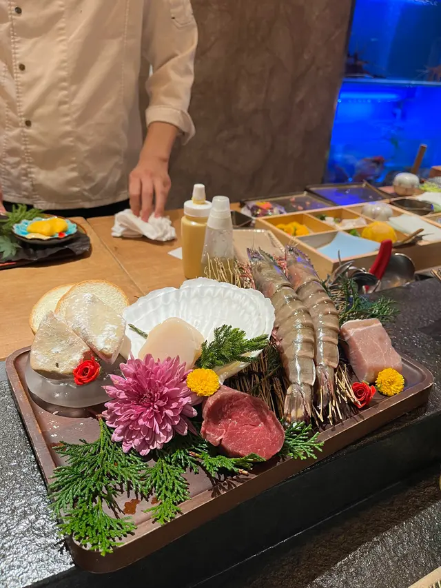 見呢間鐵板燒網上嘅評價唔錯,早前就同朋友嚟食晚飯,果然無令人失望,係近期係香港食過最好味嘅一餐鐵板燒!店員首先展示今晚鐵板燒嘅食材前菜方面有和歌山富有杮配芥末麵豉醬,以及慢煮八爪魚,柿嘅味道清新配咸味嘅醬又意外地好味,八爪魚慢煮了三小時,夠晒入味又夠冧之後有北海道真蠔配橘子啫喱,絕無誇大,隻蠔真係有手掌咁大,十分鮮味,配清甜嘅橘子啫喱好夾刺身有拖羅及真鯛,拖羅唔算肥但鮮味,特別嘅係真鯛配左松露油及雪鹽,食到濃濃嘅松露油香接住係燒左口魚邊身金䱽魚腩手卷,魚腩肥美鮮甜,加上燒左口魚邊油香,仲要師傅特登用魚乾墊底,一啖食到唔同嘅味道及口感,層次豐富食完刺身終於到鐵板燒出場,先有沙巴虎蝦配雞冠草沙律,虎蝦上有滿滿嘅蝦膏醬汁,味道十分香濃鮮甜,蝦肉又夠彈牙,做得非常出色!之後有帆立貝海帶湯配自家醃製三文魚子,帆立貝煮得啱啱好唔會太老,海帶湯完全就係帆立貝嘅精華,最特別係三文魚子係餐廳自家醃製,唔同一般三文魚子爽脆嘅口感,呢度反而係冧帶點軟糯,亦食到醃製醬油嘅味道另一驚喜係法國鵝肝配藍莓醬及黑豆,好多時出面嘅鵝肝煎出嚟油淋淋,呢度煎得香口但唔油,再加上藍莓醬食完唔會有種成口油嘅感覺最後仲有煎牛柳粒,我揀左五成熟,雖然厚切但仍然煎得嫩冧,牛肉味香口,基本上唔使任何調味都好好味鐵板餐嘅最後當然唔少得黑松露蟹肉炒飯、炒雜菜及魚湯,炒飯嘅蟹肉極多,黑松露味亦唔會蓋過晒蟹肉味,明明已經極飽都要食晒個炒飯最後甜品有蕨餅及綠茶布丁配黑豆,兩款甜品都清清地唔會太甜,完美為呢餐作結總括呢餐食物款式多、食材高質、每碟菜嘅設計都別具心思,仲要套餐做緊85折,絕對係極佳嘅體驗!…Read More