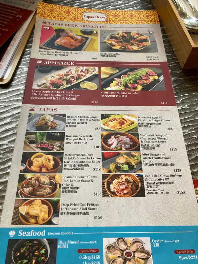放假行開黎新蒲崗,想食西又見到Tapas Brew做西班牙菜,好難得咁專,就一於試下,店既裝修唔錯又有户外位,好有外國餐廳既味道如果唔係太熱一定坐出面,餐牌睇落原來同隔離德國餐廳互通,所以西班牙同德國野都有美國西冷牛扒 🤍🤍🤍🤍🤍🤍🤍🤍🤍🤍薯菜 💖💖💖🤍🤍🤍🤍🤍🤍🤍南瓜餐湯 💖💖🤍🤍🤍🤍🤍🤍🤍🤍先飲南瓜湯,正正常常,味道唔差但無乜食材味,一個心係俾賣相成個係set lunch黎既,西冷牛扒,無問幾成熟已經有啲驚,上枱賣相好靚,擺盤幾吸引薯菜係Grilled vegetable,樣同味道都唔錯牛扒,一切已經知死,切返百拎下都未切開,硬過個頭,食到牙都甩,無咩肉質或味道可言好得人驚,係我食過最難食既扒,茶記扒都好食一百倍份量又少,雖然係set,但都無咁誇張架,同系列餐廳以後不了,好坐都無用…Read More