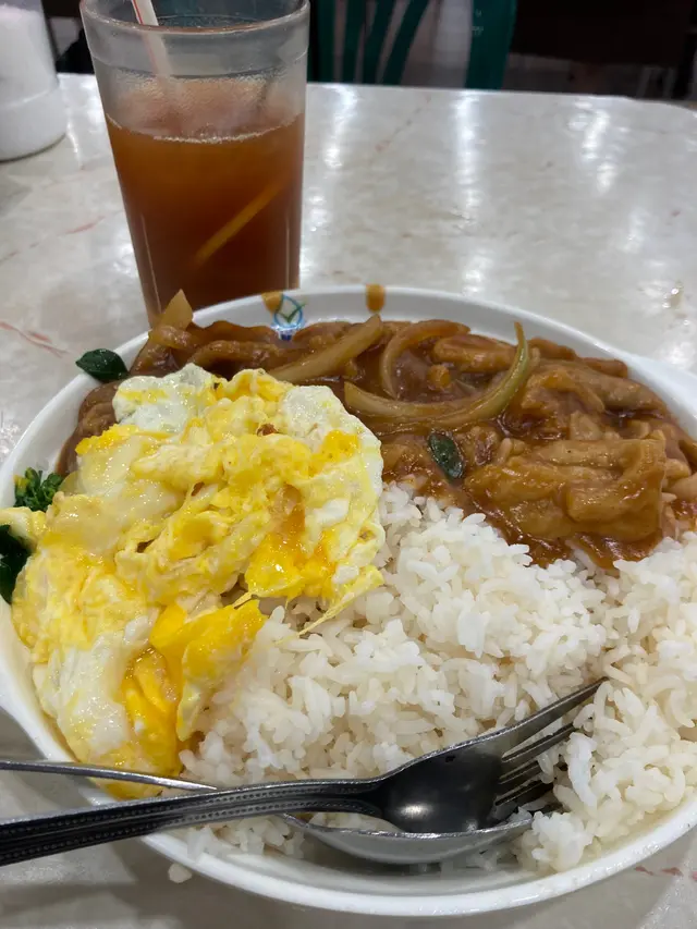 沙爹雞絲炒蛋飯凍檸茶