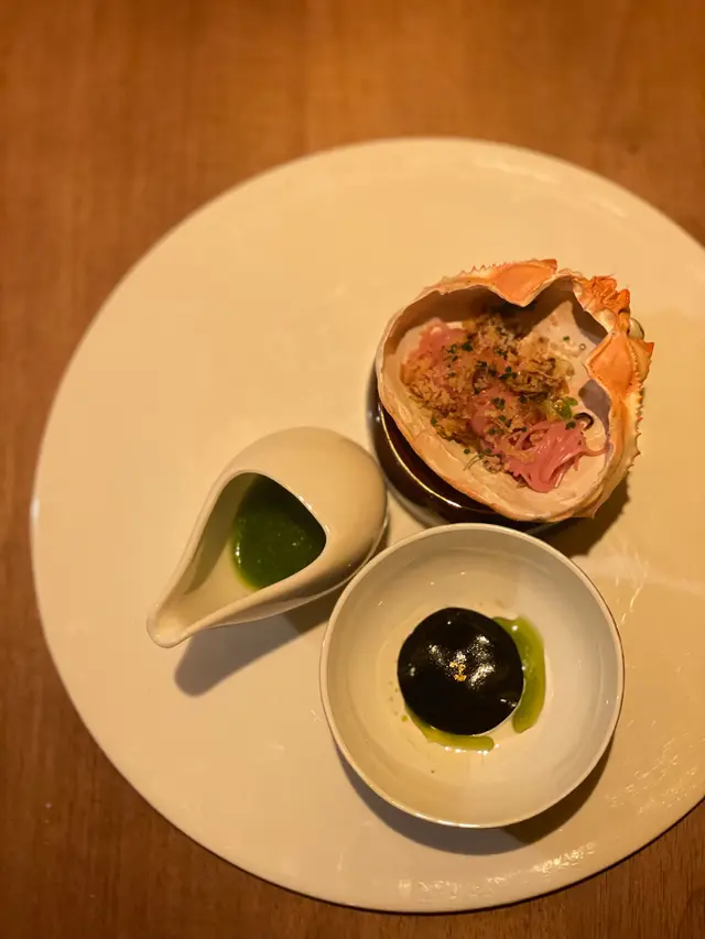 現場環境比相片更柔和優雅,牆上以古典書籍相伴,坐窗邊可欣賞維港美景,美食加持再加上現場音樂伴奏,渡過愉快的晚上🌙⭐特別節日可以預早通知,餐廳會用專業相機拍照給客人留念,重點是,相機質素好好,不用P圖也有美照,只要穿得美美👗過來就可以了⭐Tasting Menu :🎣Spanish Cuttlefish & Royal Daurenki Caviar魚子醬咸香+柚子泡沫混合墨西哥辣椒微近令西班牙墨魚更惹味🌊Toro Sashimi|52-Degree Scallop|Sea Urchin Tart3款日法元素的small bite,層次十分豐富又有趣🦀Steamed Fresh Blue Crab蟹肉嫩滑,配上梅子麵蠻清爽🍲Seafood Bisque經典的法國濃湯像將海洋放進胃裡,香濃而不膩🐖Jamón & Black Truffle36個月的伊比利亞火腿配上松露和牛肝菌,身為菌類愛好者,很喜歡這道菜🦐Charcoal Grilled Pacific King Prawn像放在桌上的畫,經過炭燒的太平洋大蝦仍保留肉汁,十分彈牙,帶微迷迭香及蒜香配搭蠻討好🐮Australian M6 Wagyu Beef Short Rib低溫烹調的牛肉軟腍,配上柚子牛肉醬,連底部薯仔吸收到精華,2款主菜各有特色🍰Sea Salt Caramel Chocolate Mousse Cake一半係溫柔的焦糖榛子,一半係濃郁黑朱古力,很有法國精緻甜品的味道不論閨蜜聚會還是情侶約會也適合也十分推薦🪽…Read More