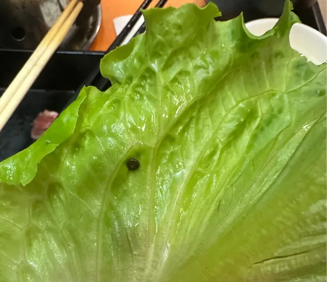 粥底火鍋的生菜吃出兩隻蝸牛,第一隻下到鍋裡我才發現,圖片裡的是第二隻,剩下的菜葉也不敢再檢查。明明看起來是水洗過的樣子結果這麼令人觸目驚心,請負責洗菜的工作人員上點心吧,此店的食品衛生安全令人感到擔憂。此外牛肉片肥到無法下口,幾乎一半都是肥肉,配上清淡的調味更是讓人難以下嚥,唯一值得肯定的是用的不是合成肉。餐廳應該好好把握出品保持品控的穩定,畢竟60元一份的餐也不算便宜還是在連鎖快餐店,再多花十元多走100米就能吃到出品很棒也衛生的定食了。以後不會再來這家店。…Read More