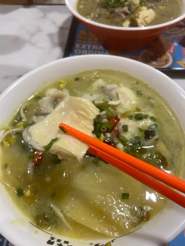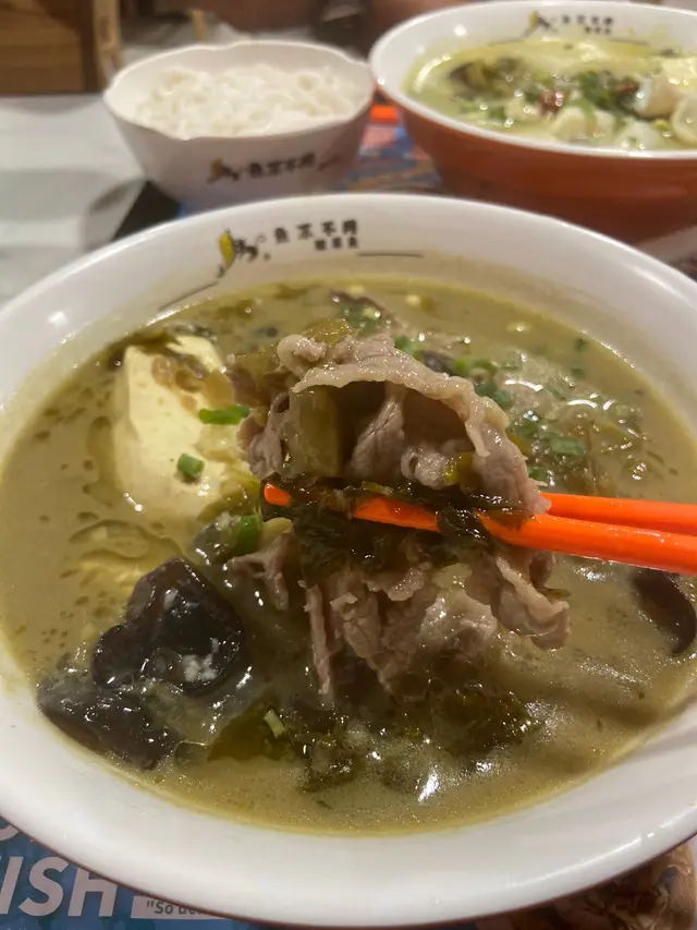 餐廳專做酸菜魚類別的食物,足足有八款湯底:香辣、酸菜、檸檬味、青花椒、老壇、麻辣、香辣和蕃茄味任君選擇。一碗米線嘅價錢就可以食到好正宗嘅酸菜魚。🤩當日叫了招牌老壇酸菜牛肉和不辣酸菜魚,以陳年老缸酸菜配上特製濃湯,再加鮮甜美味嘅魚片,酸酸辣辣口味,一食上癮。😋而每碗都可選擇兩款餸菜,再贈送主食一碗,可以選擇米飯,米線,手打薯粉,份糧十足。酸菜魚普通版用的是龍利魚柳,亦可加錢升級版食生魚。根據店員推薦點了生魚片,肉滑厚實,魚肉比起牛肉更有驚喜。現在百物騰貴,原本以為幾十蚊一碗酸菜魚份量不會多,點知無論主菜和配菜份量很足,味道亦不錯,魚肉很滑,難怪晚市坐滿人。👏🏻其實以單一的店舖來說,專做酸菜魚,所以味道方面都有一定水準。店員亦很友善,會關心口味是否適合,場內冷氣亦十分足夠,怕熱既朋友都需要怕。喜歡食酸菜魚的朋友不容錯過!✅推薦3.8/5味道3.8/5環境3/5服務4/5價錢4.5/5…Read More