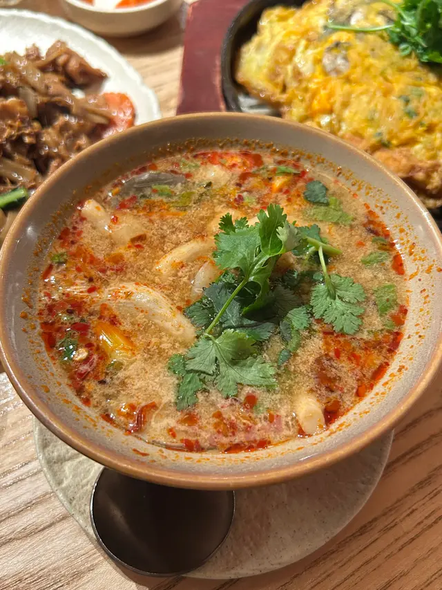 今日喺觀塘試咗間fusion泰國菜,好有驚喜。鐵板蠔餅 $108蠔餅用鐵板上,熱辣辣,邊緣煎得金黃香脆。最估唔到係個份量好足,整體鑊氣十足。沙嗲雞肉串燒 $58雞肉燒得剛好,肉質保持嫩滑。沙嗲醬係精髓。炸魷魚 $58魷魚本身好彈牙,配香草沙律醬好夾。冬陰功湯 $52呢個份量夠兩個人飲,本身見到$52仲以為得好少,湯底椰奶的平衡做得很好,酸辣開胃,非常好飲。乾炒豬肉河粉 $138河粉炒得有鑊氣,色澤均勻。豬肉片夠軟腍~龍眼香茅特飲 $48味道清甜自然,龍眼的甜味和香茅的清香結合得很好,冰涼解膩,是搭配濃味泰菜的絕佳選擇。泰式髒髒茶 $38賣相很吸引,適合打卡。甜度控制得宜,不會太膩,奶蓋和茶底的層次豐富,是一杯有驚喜的特飲。觀塘道 348 號宏利廣場 1/F 101 號店…Read More