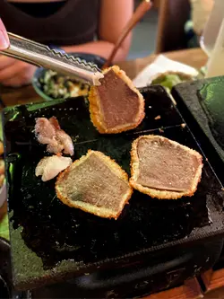 前排成日忍口介左一陣牛,今次同朋友破破介去左間專食石燒牛肉嘅餐廳😛😛佢地牛肉種類都幾多!佢地嘅本店名物就係無限添嘅吉列牛脷🥩👀記得食得晒先好嗌,唔好曬野呀🤪~𓃟𓃟𓃟𓃟𓃟𓃟𓃟𓃟𓃟𓃟𓃟😛吉列牛脷午市定食 $126(7.6/10)(🥙沙律+🍶 冷泡茶 +紫菜月見飯)就咁一碟牛脷已經超大碟超多舊🤪!每一舊燒一燒之後食落啖啖肉。脆口嘅吉列邊,襯埋wasabi味嘅沙律醬好夾✨。如果再juicy啲就更好!不過無限refill好抵食🤣我同朋友食左一盤都已經飽!🐮鹿兒島黑毛和牛壽喜燒午市定食 $186(7.7/10)(沙律+ 冷泡茶 +紫菜月見飯)和牛分開幾小片,唔算好厚,但有滿滿油花😬。燒完即刻點佢地配埋嘅壽喜燒蛋汁,甜甜地又食到蛋汁同牛味。紫菜月見飯🍙紫菜撈埋日本蛋汁,香口得黎襯埋燒肉冇咁悶😎🤎和牛刺身Carpaccio $88(7.8/10)本身都有啲驚會好難入口,點知原來薄薄地又有啲油花嘅和牛,再加埋啲sauce幾好味幾嫩👀!面頭有一啲紫菜中和一下膩感。…Read More