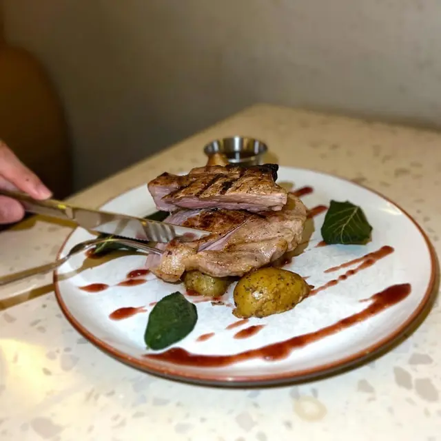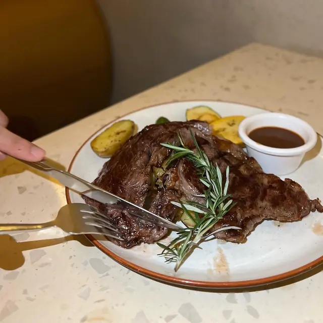 大約$300就包咗前菜、主食、甜品同飲料,雖然係一間cafe,但食物都幾有水準呀,仲要坐得好舒服,推薦! 呢間係寵物友善餐廳,有幾chill嘅户外空間,仲可以帶埋寵物一齊食添呀~前菜🧄洋蔥薯仔湯配蒜蓉包本來以為係平平無奇的忌廉湯,點知每啖都飲到蔬果的香甜,愈飲愈鐘意,問店員先知原來主要材料係打碎咗嘅洋蔥同薯仔,極少係餐廳飲到薯仔湯,仲可以配埋香脆嘅蒜蓉包一齊食。炭燒法式豬鞍架伴紅桑子汁 $348豬鞍架好厚身,經炭燒後,帶陣陣油脂香。紅桑子汁酸酸甜甜,同豬鞍味道好匹配,清新又開胃,如果肉質可以再爽彈啲會更加完美。🥩炭燒美國安格斯肉眼 $298嚟到比肉眼扒個size嚇親,真係好少見餐廳會比咁大塊。脂肪同肉比例剛好,然後配菜味道都不錯,不過建議大家唔怕生嘅話叫三成熟,肉質應該會更細嫩。甜品豆腐雪糕 芝士蛋糕甜品都絕不遜色,豆腐雪糕幾香豆腐味,而且唔會死甜,芝士蛋糕係偏軟身質地,水準不錯呀,份量也剛好。…Read More